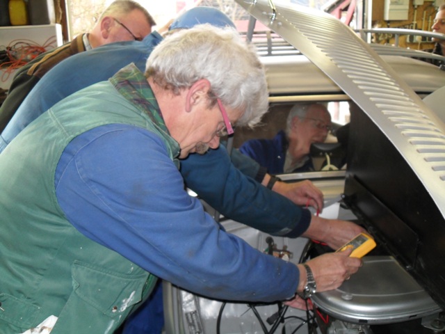 Het thema van deze dag was het controleren van de juiste werking van de dynamo en spanningsregelaar en het meten/ vaststellen van de eventuele spanningsverliezen in het bedradingssysteem.