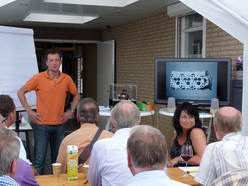 Op 3 september ging alle aandacht uit naar de dames in onze vereniging. Nee niet die oude op 4 wielen, maar die leuke op 2 benen! Speciaal voor onze partners een interessante presentatie over kleur en stijl in kleding, gevolgd door een wijnproeverij. Zoals op de foto's te zien is, was er volop hilariteit in de tent, natuurlijk ook toen enkele heren een kleuradvies kregen.. Als intermezzo gingen Geert en Marc terug in de tijd tijdens een fotoshoot die uitmonde in een filmpje waar de Traction natuurlijk een hoofdrol speelde. Matthijs Peters bracht ons na een heerlijke lunch nog even bij hoe nou ook al weer die ontsteking werkt.
