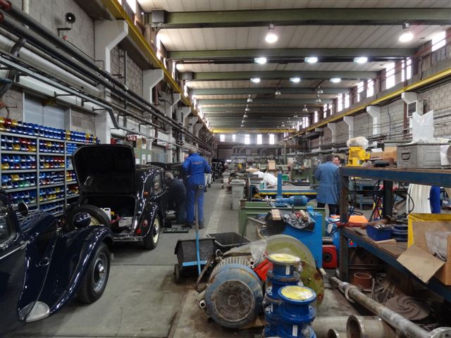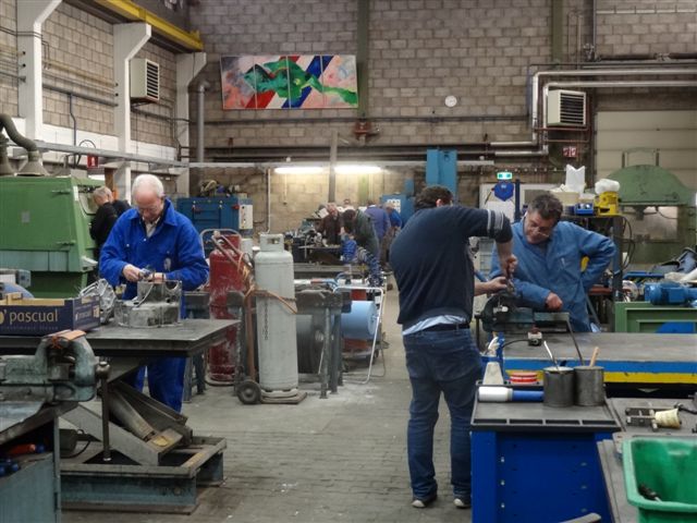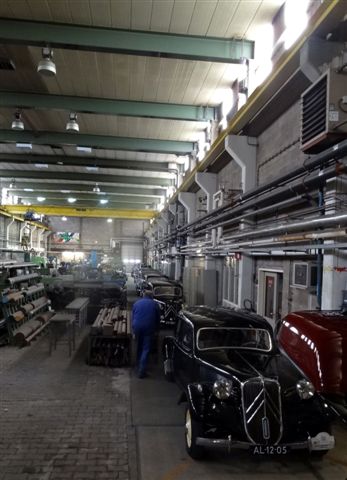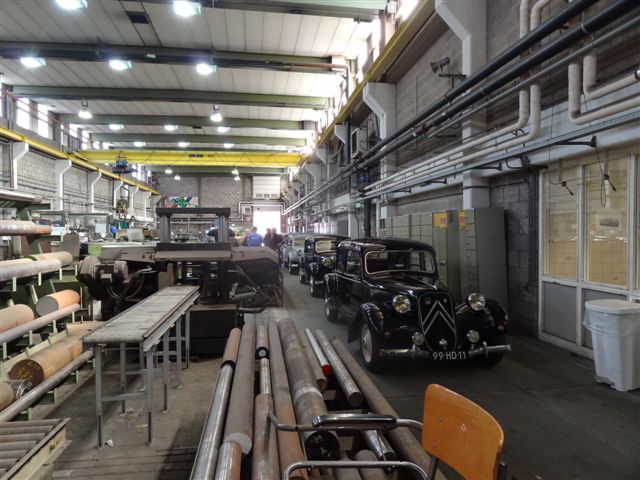 Na de koffie in Traction colonne naar Vlissingen, naar het imposante fabrieksterrein van ThermPhos. Wederom stelde de directie van ThermPhos, na de terechte controle van onze paspoorten, haar fabriekspoorten open om onze “roestige” onderdelen dankzij het moderne en hyperveilige machinepark van ThermPhos weer helemaal als nieuw te kunnen behandelen. Fantastisch gezicht was het te zien de ca 18 tractions in rij opgesteld in de grootste werkplaats van “Zuid” tussen de draaibanken, wasinstallaties, gritmachines, werkbanken, hijsinstallaties etc. Je krijgt het gevoel dat de tractions weer terug geplaatst zijn naar de vroegere Citroënfabrieken aan de “Quai de Grenelle in Javel….Vlissingen was op 14 april even het Quartier van Parijs waar onze hobby zijn oorsprong vindt.