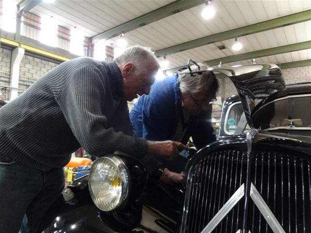 Ik blijf het indrukwekkend vinden om mijn schone overall, met het geborduurde opschrift “Citroën” aan te trekken en dan in die machtige werkplaats van ThermPhos mijn mede leden hard aan het werk te zien……wat een mazzel lid te zijn van TAN Zuid, wat een mazzel dat Huib de Bruine zo’n uitstekende relatie met zijn bazen heeft en bovenal wat een mazzel dat die bazen steeds weer bereid zijn deze schitterende werkplaats een maal per jaar ter beschikking te stellen, wat een mazzel dat de pensioengerechtigde leeftijd opschuift zodat wij nog lang gebruik mogen maken van deze grote “schoonheidssalon” onder deskundige leiding van Huib de Bruine.