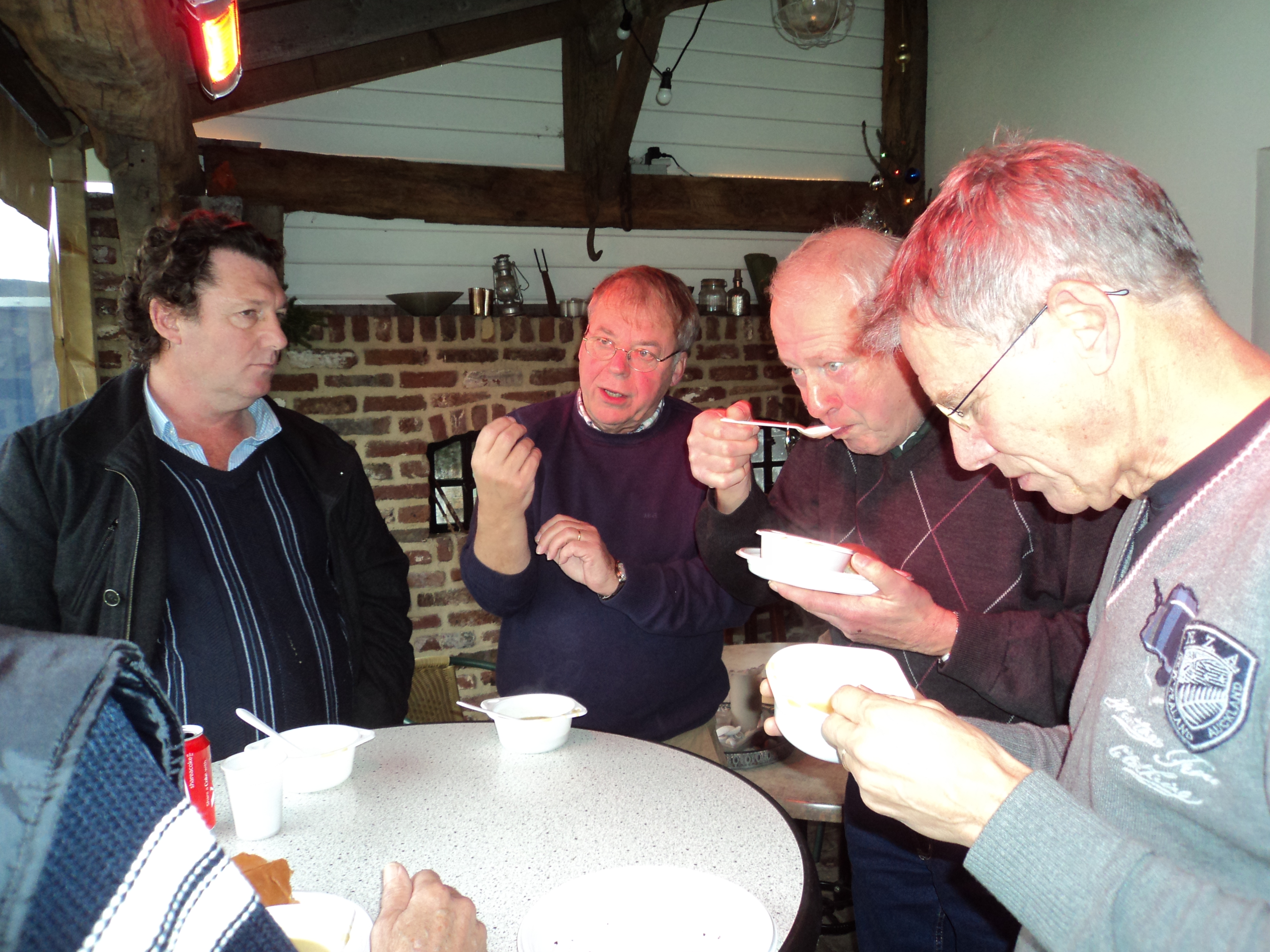 De locatie was dit keer de muziekboerderij van Hans van den Brandt. Het valt ons wel op dat zowel Frans Gommans als Hans van den Brandt een mooie ontmoetingsruimte met bar en stamtafel aan huis hebben. Heeft iedereen in Grubbenvorst dat zo?! Je zou het bijna gaan denken. Het bewijst maar weer eens dat dit stukje Noord-Limburg gewoon heel gastvrij en gezellig is. De voortreffelijke catering was dit keer in goede handen van Leontien van Eijk en Geke Kulsdom.