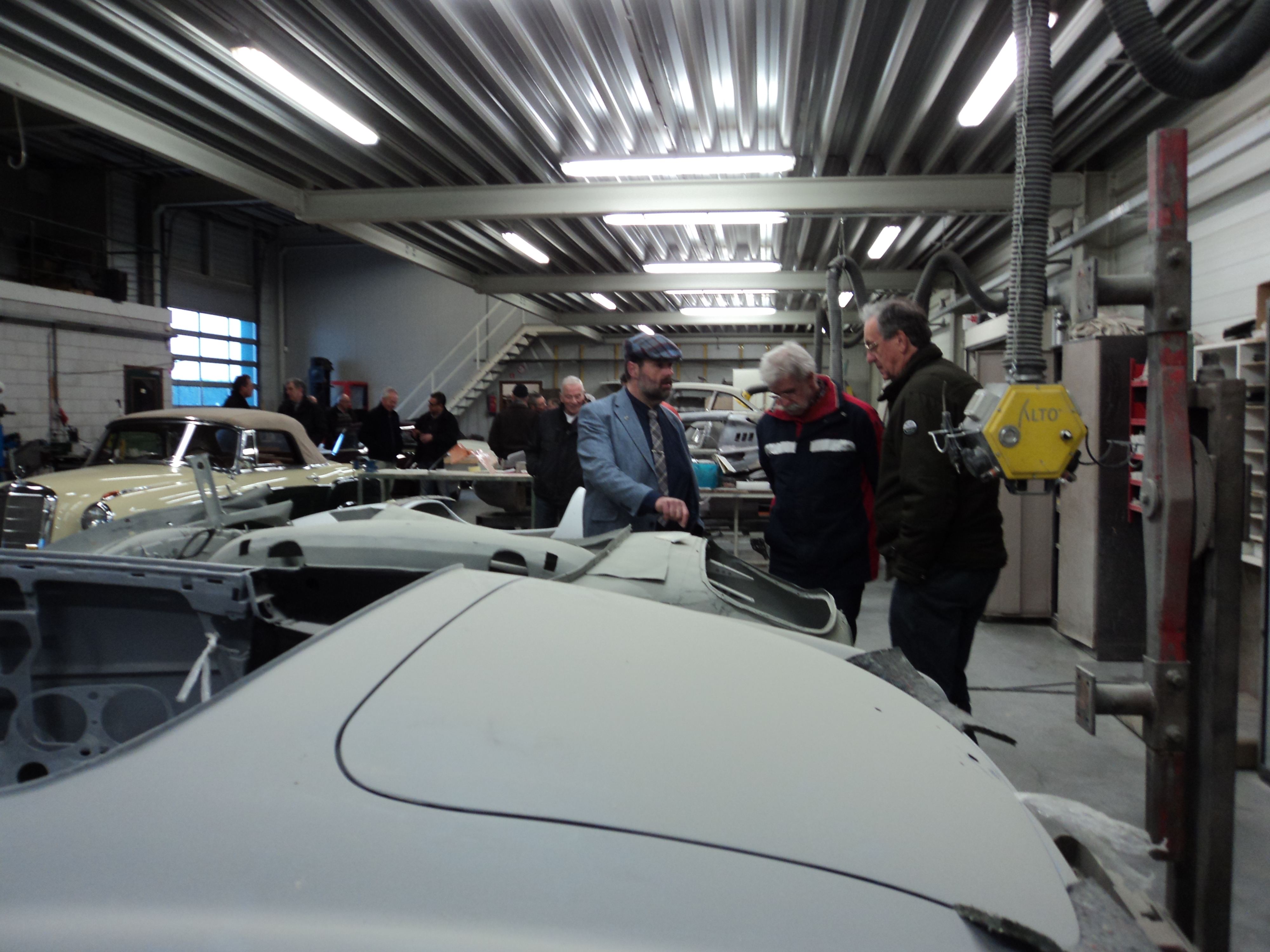 Na dit alles zijn we als verrassing even bij de buren verderop gaan kijken www.classiccarvenlo.nl (v/h de firma Niessen). Dit is namelijk een bedrijf waar vooral hele exclusieve klassiekers worden gerestaureerd. Onze rondleider Luc was speciaal langer gebleven om ons alles te laten zien.