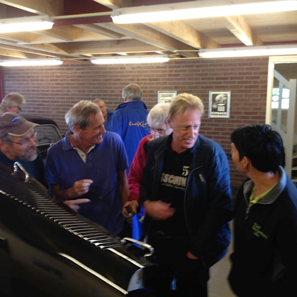 Chris had zijn fietspomp opstelling meegenomen en ook Paul had zijn apparaatje meegenomen waarmee hij zonder hulp de remmen ontlucht. We hebben het bij het aanschouwend onderwijs gelaten. Er stond wel een Traction op de prachtige “’smeerput”’ in de garage van Marc, maar dat was om de smeerpunten nog eens duidelijk te laten zien. Theo Baijens heeft een Legere met Suspension Gregoire op de achteras. Het werd na wat geredeneer duidelijk voor Theo hoe die nu eigenlijk werkt, en dat ook dit deel gesmeerd moet worden. Door de voorspanning op de achteras van dit mechaniek veert de auto soepeler in bij drempels.
