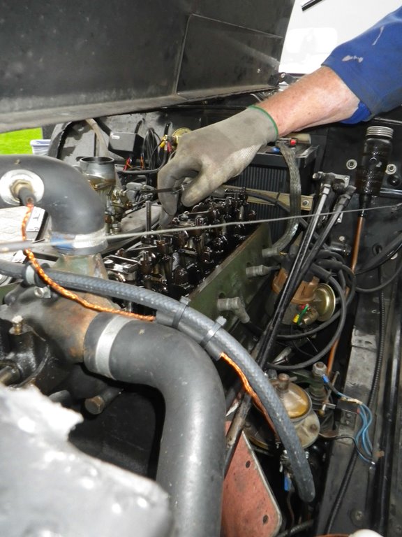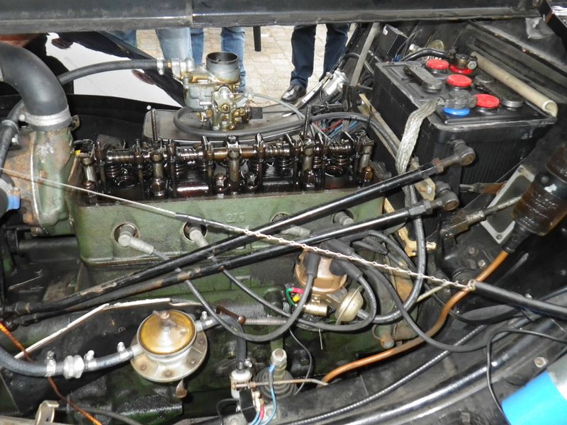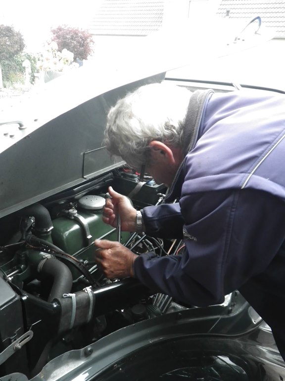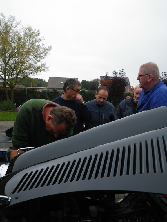 Wij (Frank en Francis) wilden onze auto ook wel even aan de experts tonen en de aftellingen fine-tunen. De afstellingen hebben wij tot nu toe vooral zelf gedaan door gewoon gezond boeren verstand te gebruiken en vooral goed te luisteren naar het motorgeluid. Al snel kregen we te horen dat we het goed hadden afgesteld en mocht ik enkel een kwart slagje geven aan de stelschroeven op de carburateur. Daarna keken we nog even samen enkele rariteiten op onze auto. De vacuümvervroeging kreeg veel bekijks en natuurlijk ook de dynamo, die is uitgevoerd met een derde borstel. Dit houdt in dat je de laadstroom kan afstellen en dit werd natuurlijk nog even tot in de perfectie gedaan. Hierna werd ook onze Trax onderworpen aan de onvermijdelijke proefrit. Dit keer was Henk Maas dienstdoend expert. Het motortje, transmissie, remmen en stuurinrichting werken naar volle tevredenheid en uiteraard wilden Henk en ikzelf wel eens weten waartoe onze Trax in staat is. Er werd even een stukje snelweg ingebouwd en laat nu maar eens zien wat je kan. Bij een snelheid van bijna 110 km/uur lieten we het gas los. We hadden nog over maar voor een auto van 76 jaar oud (ja, ja, 1939 is het bouwjaar) vonden we dit meer dan genoeg!