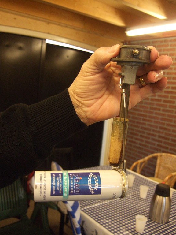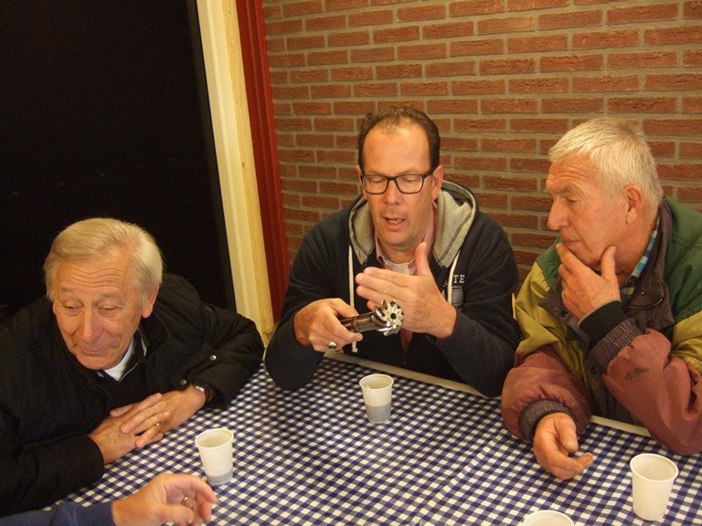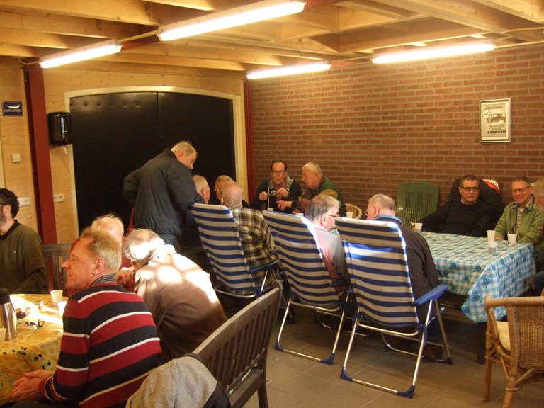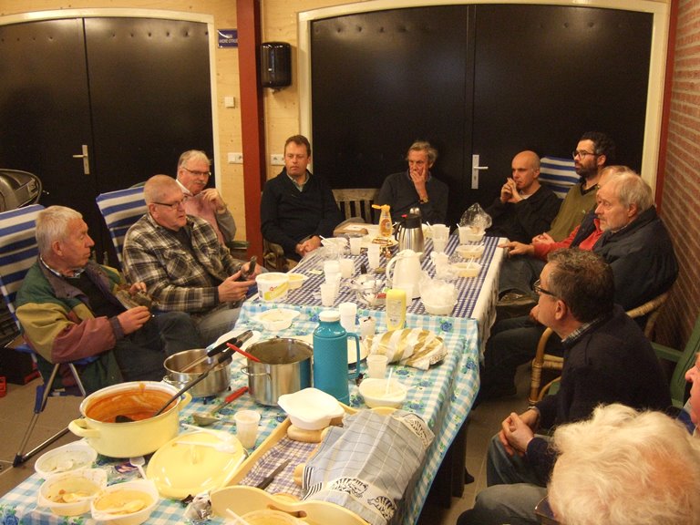 Na de koffie/thee aan de slag met een presentatie van Chris Hahn. Hij legde de werking van de (zinkende) kurken tankvlotter uit en hoe deze verbonden is aan de meter op het dashboard. Een schema ondersteunde dit relaas. De originele tankvlotters hebben een demper, die de schommeling van de benzine in de tank enigszins opvangt. Chris had een simpele maar ingenieuze oplossing gemaakt: een spuitbusje als vlotter. Dat de sleuteldag ook een functie heeft om elkaar te ontmoeten en informatie uit te wisselen en elkaar verder te helpen met de hobby is onderhand wel duidelijk. De keuze uit twee soorten soep en broodjes met worst smaakte helemaal goed, want de innerlijke mens moet ook zijn aandacht krijgen!