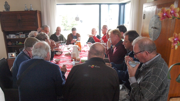 Er werd hard en enthousiast gewerkt, zeker de helft van de aanwezigen hadden de handen goed vuil gemaakt, en er werd soms wel met 6 man tegelijk aan verschillende kanten gewerkt, ondersteund door anderen wat betreft goede raad en het aangeven van gereedschap. De echte experts hadden ook hun eigen specifieke gereedschap mee, vooral de “trekkers” waren zeer zinvol. Soms werd door het enthousiasme ook wat teveel losgemaakt. Voor Paul was het belangrijk om alles wat los kwam goed op tijd te pakken te krijgen om het gesorteerd weg te leggen ter voorkoming van een te grote puzzel achteraf.