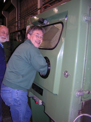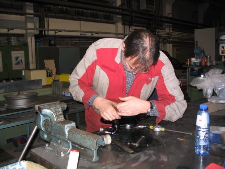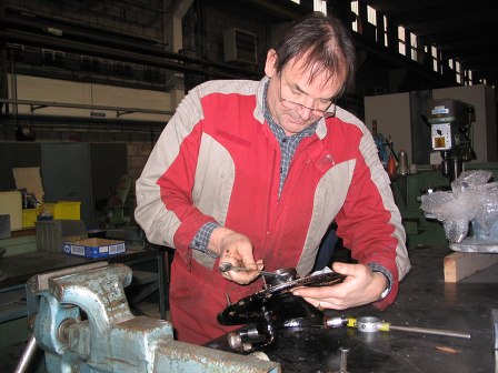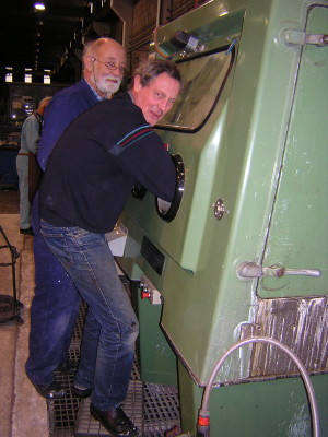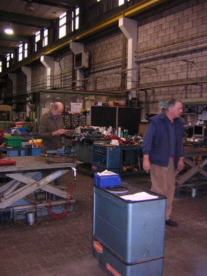 Huib beschikt over een wel zeer speciale werkplaats die hij ook goed laat bewaken. We mochten bij Thermfos gebruik maken van gereedschappen en machines waar je als rechtgeaard sleutelaar met stil ontzag naar stond te kijken.