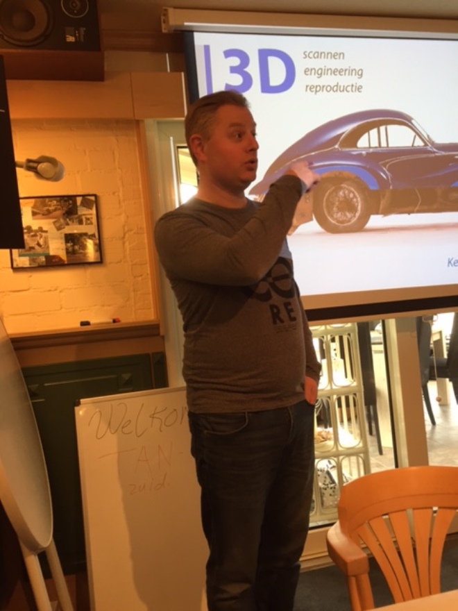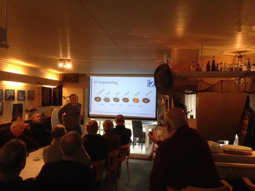 In hun gezellige ruimte met bar, volgehangen met foto’s van wonderbaarlijke visvangsten op hun Noorse tripjes, vond een 3D presentatie plaats door de firma Second2New uit Almere. Verzorgd door Michel Veul, Brigitte Gabel en Mike van der Meulen. Met de 3D techniek is het mogelijk om oldtimers "langer op de weg te houden".