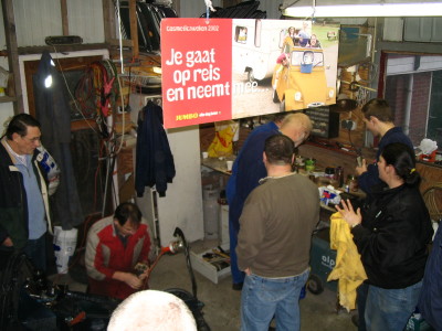 Cees vertelde opgewekt dat er ook nog een kleine brug in zijn mooie knutselruimte komt. Onze citro-elektro-expert Jos was speciaal daarom ingevlogen naar De Heen om een driefasen stroom voorziening aan te leggen. We dachten nog even dat er een plantjeskwekerij moest worden ingericht, maar nee dit was speciaal voor de nieuwe brug. Zo zie je maar waar je vrienden van de Traction club je al niet mee kunnen helpen!