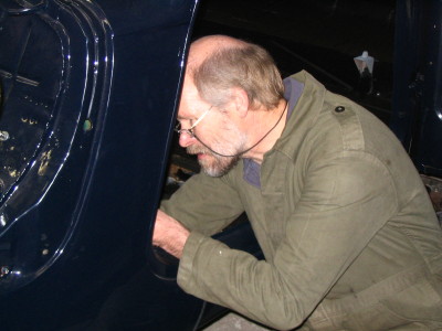 Er was nog wel uitgebreid overleg nodig op een gegeven moment: hoe moeten de voeringen gemonteerd worden?? Na overleg over en weer en het raadplegen van de vele boekwerken en handleidingen van Cees kwamen we tot de slotsom dat de grote voeringen aan de voorzijde van de voorwielen gemonteerd moesten worden.