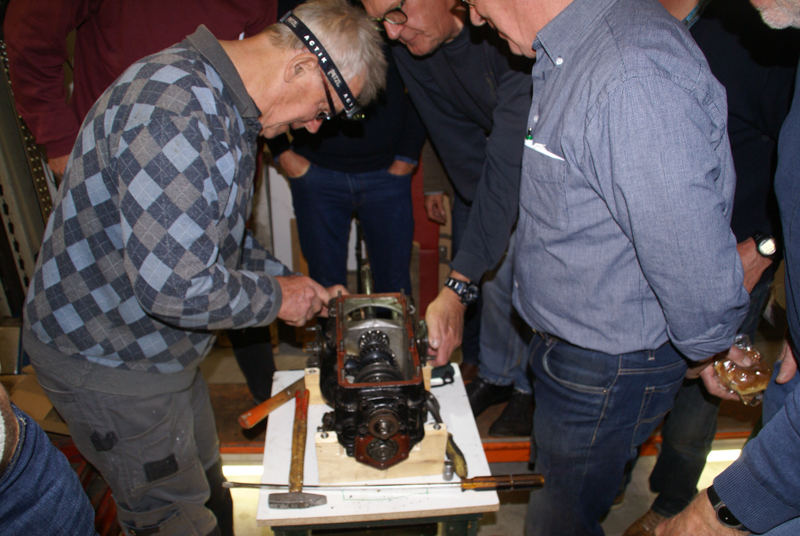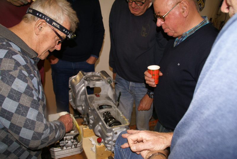 Het onderwerp, de versnellingsbak, was het weer ouderwets sleutelen aangevuld met de uitleg over de werking en bespreken waar je op moet letten om de conditie van de bak te kunnen beoordelen. Leerzaam was het feit dat we gebruik maakten van een gereviseerde bak, die was meegebracht door een deelnemer en we enkele zaken ontdekten, die nog wat extra aandacht nodig hadden.
