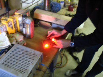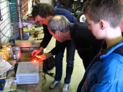 Tegelijkertijd kwam er uit de tas van Matthijs en Jos een mooi proef exemplaar van de verbeterde LED achterverlichting. Op de sleuteldag bij Jac Jamar was flink ge-expirimenteerd met een proefopstelling. Daar bleek dat het zorgen van een goede en gelijkmatige spanning en stroomtoevoer belangrijk is en de keuze van de juiste LED. Matthijs, Jac en Jos hadden een nieuwe schakeling bedacht die alle eerder ondervonden problemen teniet doet. Ook zal nog een andere kleur LED (amber) worden getest ivm de betere zichtbaarheid. De uiteindelijke kleur door het lampglas is dan nog steeds rood hoor, maar wordt nog eerder opgemerkt door het menselijk oog. Nou de proefopstelling die onze Willie Wortels lieten zien gaf een duidelijk en helder rood stadslicht en remlicht. Ook is het hen gelukt om een bajonetoplossing en een buislamp oplossing te maken. De planning is om een aantal printplaatjes en overige materialen aan te schaffen. Dan krijgen de leden in Zuid de mogelijkheid om op de sleuteldag van 8 maart zelf een setje in elkaar te zetten tegen kostprijs van een paar tientjes. Dit kan voor 6V en 12V tractions. U krijgt dan een schakeldoosje/voeding dat u in de kofferbak plaatst en aansluit op uw originele bedrading naar de achterlichten. In uw achterlichten plaatst u de led lampjes en rijden maar!