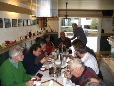 In de tussentijd informeerden enkelen naar de super barbeque met spit die Frans had gemaakt. Perfectionist in hart en nieren zoals Frans is, had hij een electrisch aangedreven spit gemaakt waar een paar keer per jaar een varken op geroosterd wordt. Het water liep ons al in de mond, zult u begrijpen.