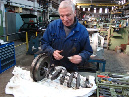 Ondertussen werd door Huib, onder toezicht van Pim en Henk de krukas van Henk uitgebalanceerd….goed gereedschap is het halve werk; moet je nog wel weten hoe dat goede gereedschap werkt!