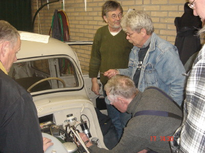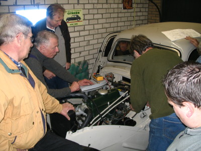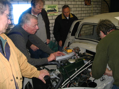 Nu stond alles in het teken van het aan de praat krijgen van de gereviseerde motor. Uw verslaggever was wat later ter plekke en kwam toen alles al soepel rondsnorde. De oorzaak van het niet starten bleek een storing in de bedrading. Toen dit met wat noodverbanden werd uitgetest kwam de sleutelploeg erachter hoe het moest. Ook een van de claxons bleek sluiting te maken, dus daar wordt nog naar gekeken.