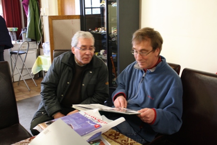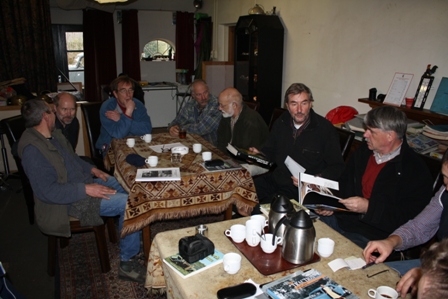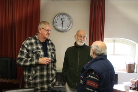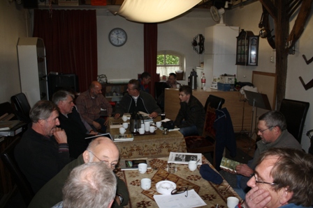 Tussendoor genoten we van de koffie en de soep die Maria ons op de deel serveerde. Buiten was het kil en koud, en binnen brandde de houtkachel. Onze voorzitter Guus probeerde hier met een vriendelijke hint de gastheer te verleiden om er vooral een clubhuis voor TAN zuid van te maken, maar gastheer Ton liet zich natuurlijk niet voor dit karretje spannen. Wel gaf hij aan dat de club natuurlijk welkom is voor dit soort belangrijke controles. "Samen uit, samen thuis met de ritten en veiligheid voor alles", daar gaat het om in Zuid. En dat kunnen wij ook van harte onderschrijven.