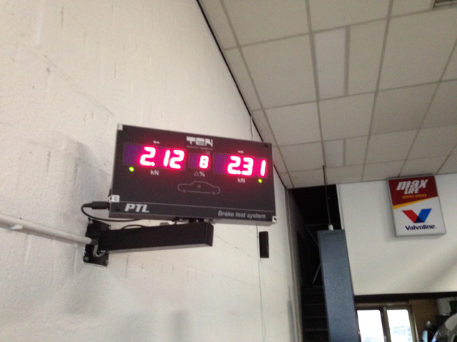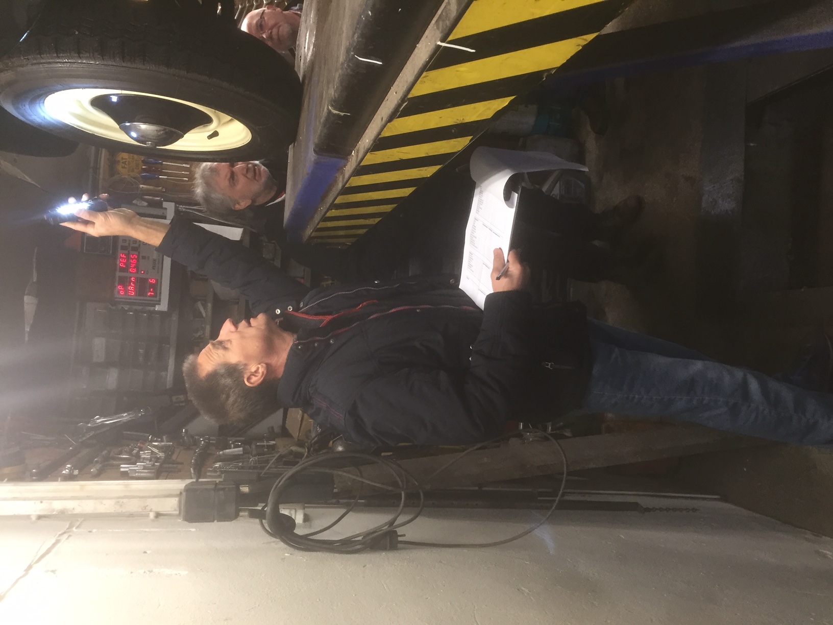 Ton beschikt niet over een eigen remmentestbank, dus had hij met een plaatselijke onderneming geregeld, dat de traction daar even op deze pijnbank mochten. Zowel de voor- als de achterremmen en de handrem werden getest. Tweemaal oprijden en de laatste test gold als uitkomst. Foto’s van de display werden gemaakt als bewijs. De keuringen op zich verliepen vlot. De gebreken waren ook weer niet van de lucht. Een pitmanarm vertoonde veel speling, remmen die niet geheel voldeden, speling op de lagers, een band vertoonde een losgeraakt stuk rubber, waardoor het canvas zichtbaar was. De evt. handremkabels werden direct gecorrigeerd, lampen, waarvan het lichtbeeld verkeerd was, een los portiervanger, ….