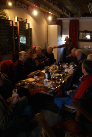 Daarna werden Maria en Ton al op voorhand bedankt voor hun gastvrije ontvangst met een bloemetje en een model van een “wieltje”. Op de vraag of hij in aanmerking wilde komen als adres voor de leden, om reparaties te laten uitvoeren, zoals TAN dat weer onlangs in gang heeft gezet, was zijn antwoord volmondig JA! Eens te meer is weer aangetoond, dat een dergelijke controle noodzakelijk is, zeker als het rijseizoen voor de deur staat. Enkele leden gaan met enige spoed aan de slag om de technische euvels op te heffen en gaan dan weer met een gerust hart de weg op. Hulde aan de technische controleurs, die ons bijstaan in de hobby, om veilig de weg op te kunnen gaan. Na de laatste controle was het tijd voor koffie en thee en intussen weer tijd voor de nodige verhalen, vragen en koffie klets. Zelfs enige moppen werden over de tafel getapt. De sfeer was als vanouds: open, gezellig en nuttig. Daar blijven we – als afdeling - op inzetten.
