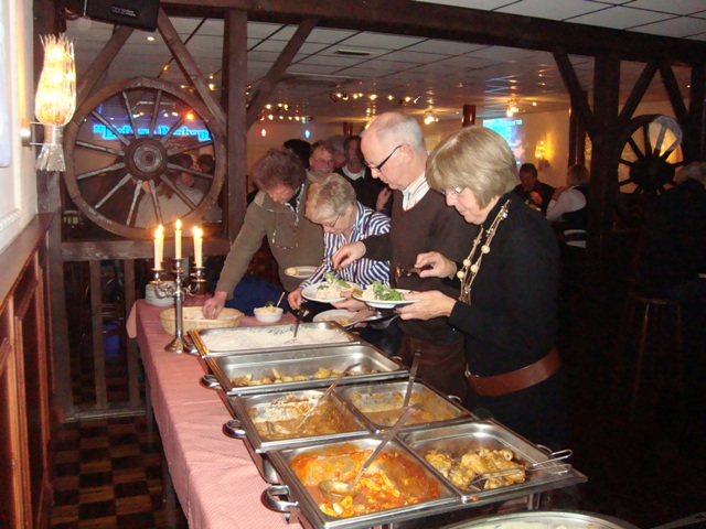 Na de goede wensen van het (nieuwe) bestuur voor eenieder werd het warm en koud buffet geopend en vond het gezellige informele gedeelte van de receptie plaats.