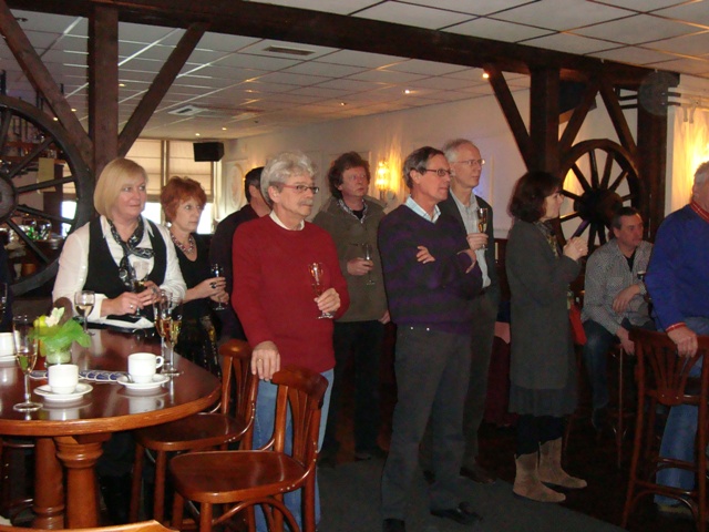 Dit jaar was er een korte onderbreking van de receptie om enige bestuurlijke mutaties te presenteren. Zoals eerder gemeld hebben onze voorzitter Guus Gussenhoven en de vice-voorzitter en secretaris Geert van Eijk beide hun periode van 2 maal 3 jaar erop zitten. Statutair dienen er nieuwe personen te komen om deze functies te vervullen. Omdat de afgelopen jaren er geen respons is gekomen op oproepen om het bestuur te komen versterken is binnen het bestuur besloten om diverse functies anders te bemensen. Dit houdt in dat naast Guus en Geert ook Rolf vd Zande, de penningmeester, zal aftreden.