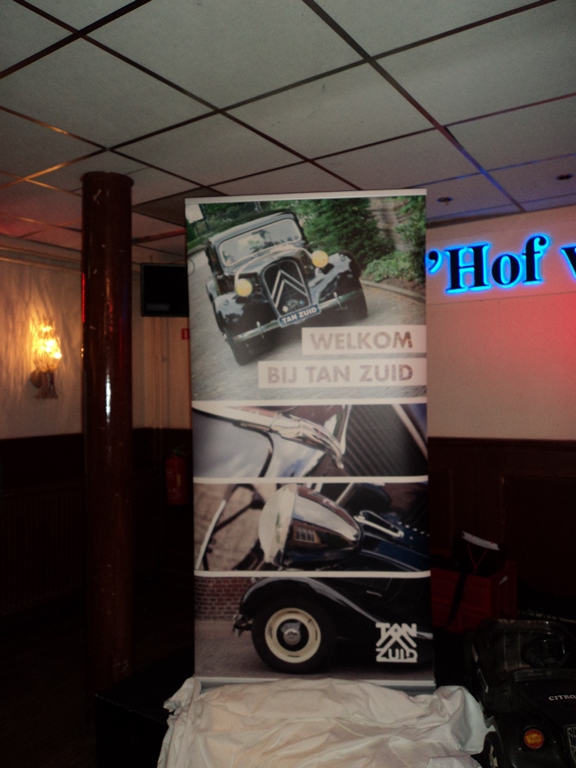 Gedurende de receptie is HET boekje uitgereikt, zijn de bestuurswijzigingen en het boeiende programma voor het komende jaar gepresenteerd. Daarnaast werd onze scheidend penningmeester in het zonnetje gezet.Om een uur of 2 werd de recepte geopend door onze voorzitter. Hij heette iedereen welkom in het bijzonder onze oud leden die speciaal waren uitgenodigd. Deze receptie gaf ons een mooie gelegenheid om ons boekje ‘TAN-Zuid 40 jaar’ te presenteren. De eerste exemplaren werden aan de gebroeders vd Boom, de oprichters van TAN-Zuid, uitgereikt door Marjon Delvaux en Henk Maas. (zie artikel "Jubileumboekje" hoe je dit kunt bestellen). Ook werd de nieuwe banner van TAN-Zuid gepresenteerd welke vanaf nu onze leden welkom zal heten bij de komende evenementen. Daarna was het tijd aan de verschillende organisatoren van de evenementen voor 2014. Te beginnen met Paul Zomers die ons direct enthousiast wist te maken voor de voorjaarsrit (6 april 2014) welke in West-Brabant zal plaats vinden. Middels een boeiende presentatie gaf hij ons al een inkijk wat ons te wachten staat. Hierna was het de beurt aan Paul Officier die ons een presentatie voorschotelde over het ‘TAN 50 jaar’ feest (29 mei t/m 1 juni 2014) wat landelijk op Hemelvaart aan het organiseren is. Voor de mensen die wat low-budget de Hemelvaart willen doorbrengen werd er nog stil gestaan bij het initiatief van de familie Maas en Helbers om de Hemelvaart met de Franse tractionclub in het kader van ‘Traction 80 jaar’ door te brengen in Noord Frankrijk. Uiteraard werd het aspergeweekend (21 en 22 juni 2014) nog eens vermeld om af te sluiten met een korte presentatie van de voorzitter van de BOCC met Rolf vd Zande en mijzelf over de najaar rit / verbroederingsrit met de BOCC (19 oktober 2014) welke op de grens van België en Nederland in het midden van Brabant zal worden gehouden waarbij we ernaar streven om dit een BOCC – TAN-Zuid coproductie te laten zijn waardoor u kunt gaan genieten van vele Tractions met Belgische platen. Ook werd er kort stilgestaan bij de financiële verantwoording van 2013 door de penningmeester. Deze werd hierna uitvoerig toegesproken door de voorzitter omdat hij na 11 jaar als bestuurslid, secretaris, penningmeester en vicevoorzitter nu afscheid nam van het bestuurlijke circuit.