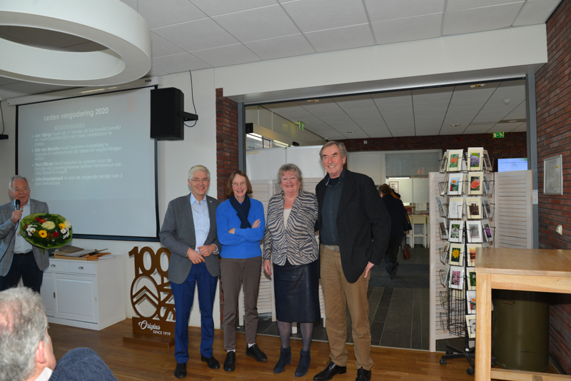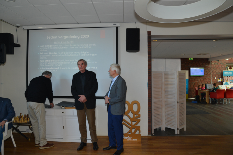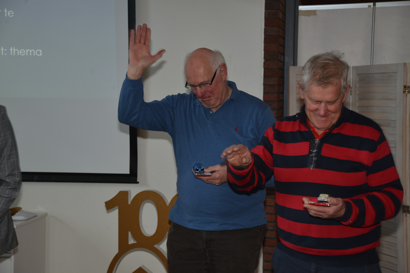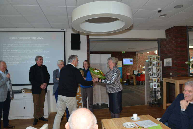De scheidende bestuursleden werden even als hun eega’s in het zonnetje gezet en met een mooi aandenken – ontworpen en geproduceerd door Arie van Aken – en bedankt voor hun inzet. Met name Jan Uijlings heeft vele jaren als bestuurslid in onze afdeling gefungeerd binnen diverse functies.