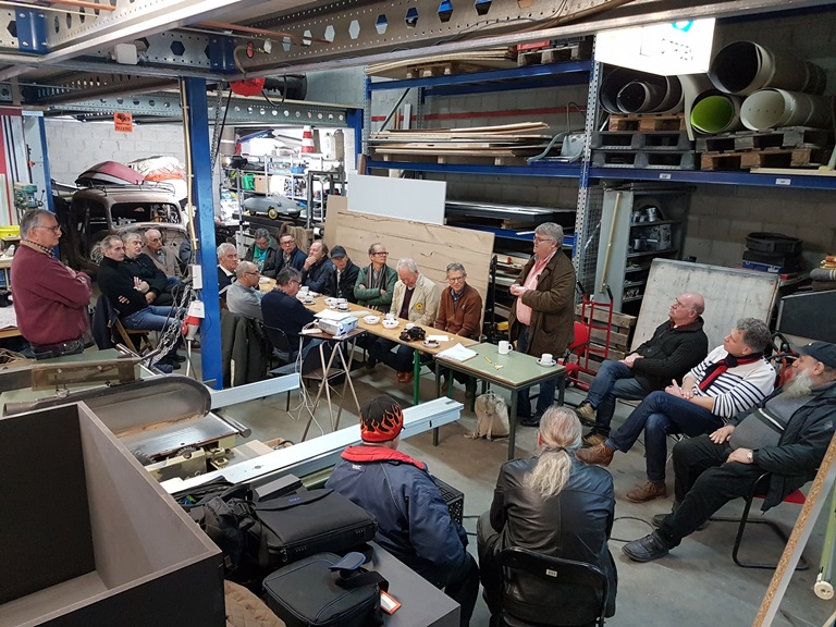 Een locatie werd gevonden bij Paul en Roger Kicken in Sittard. Een loods, waar zowel tractions als trabantjes zijn gehuisvest, ligt een grote hoeveelheid 2e hands onderdelen van Paul Kicken opgeslagen. Een uitstekende ambiance voor traxionisten.