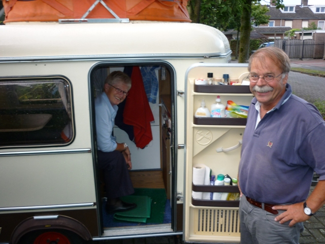 Als je zeven weken met elkaar op weg gaat, hoe is dat dan? Tja zegt Rolf, ik wil ook wel eens rustig een boek kunnen lezen. En als Wim een dag gaat sleutelen voor het team, gaan wij natuurlijk niet met zijn allen de toerist uithangen. Ik probeer nog even te vragen hoe het is om zeven weken lang in een Traction te rijden en daarna in een minicaravan te kruipen? Ook daar is op geanticipeerd zegt Wim, al zijn we geen echte kampeerders. Hij heeft al een keer proef gekampeerd met zijn kleinzoon van vijf. Die was natuurlijk apetrots op zijn opa. Maar toch, gemiddeld 300 km per dag in een Traction, daar kun wel blikken billen van krijgen lijkt me.