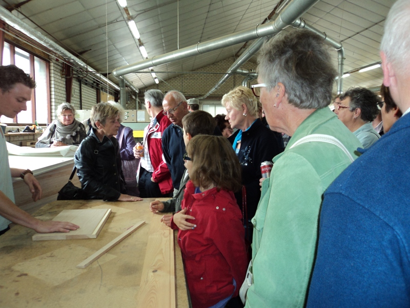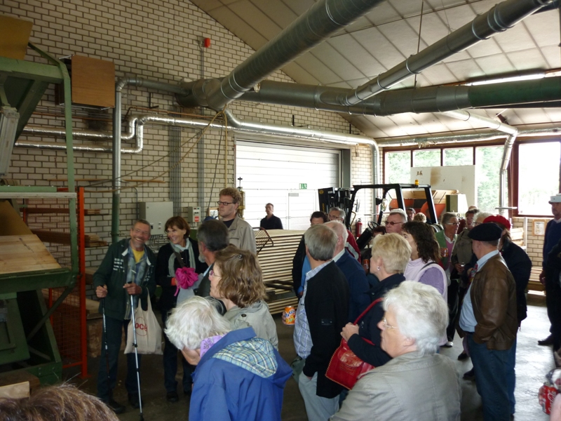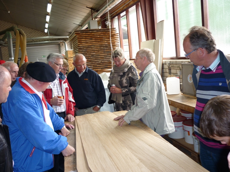 In de auto ontstond een wat aparte sfeer toen we het parkeerterrein opreden van een heuse uitvaartkisten fabriek. Na wat grappen over dit ‘eindpunt’ werden wij in de fabriek van de firma Janssen hartelijk welkom geheten door de eigenaar. Het is een familiezaak die al meer dan 100 jaar tot een van de grote spelers behoort op dit terrein. De fabriek is op tal van punten volledig gemechaniseerd en voldoet aan alle keurmerken die tegenwoordig gesteld worden door de grote uitvaartpartijen. Dit moet ook wel want de concurrentie is ‘moordend’.