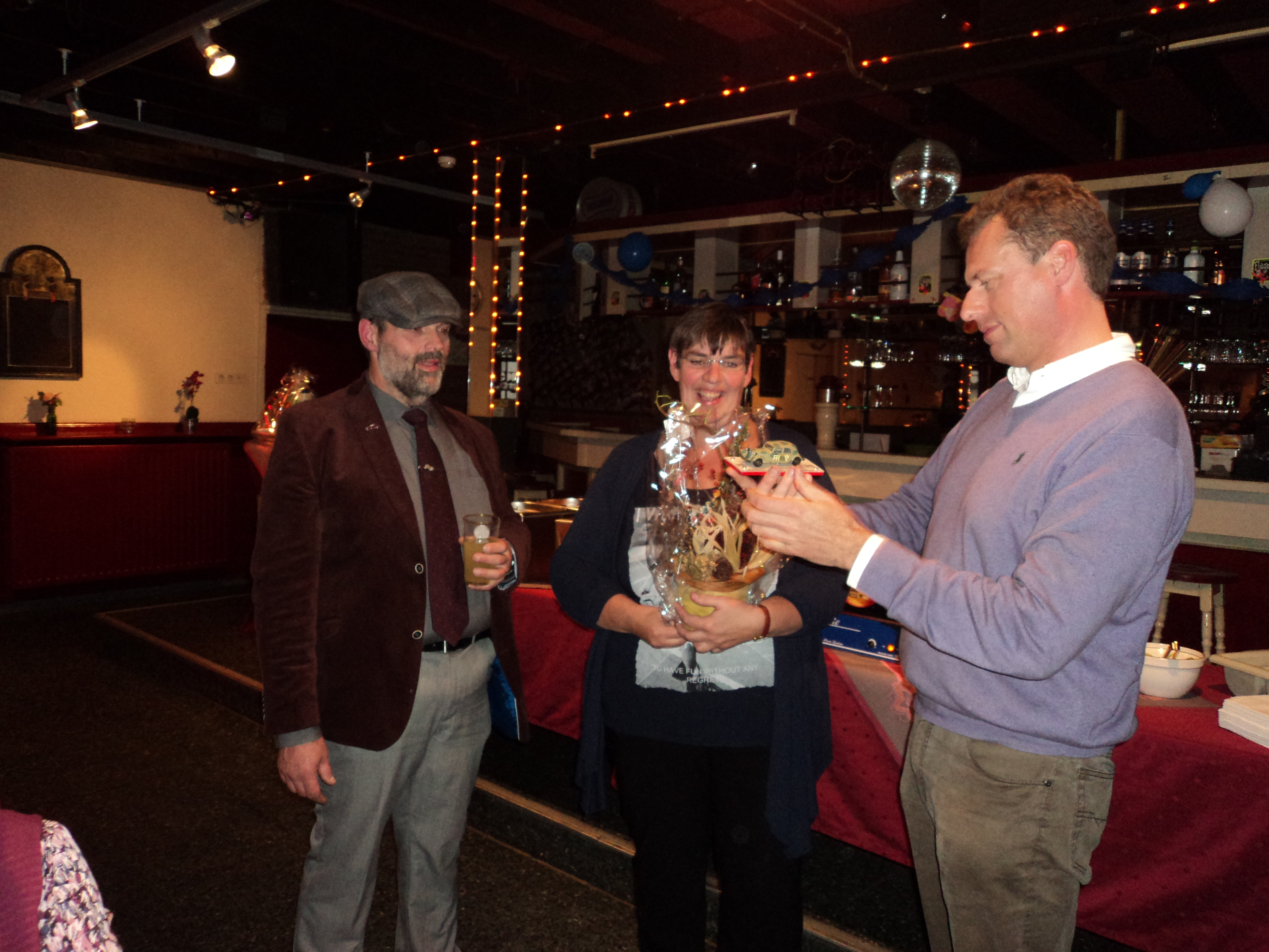 Daarna begonnen we aan het tweede gedeelte van de rit. Het gaf een geweldige zicht over dijkweggetjes en water. Uiteindelijk gingen we (zonder Traction) met het pontje naar Tiengemeten, waar ieder voor zich kon kiezen, of je ging wandelen, dan wel met een gids de kabouters van Rien Poortvliet bekijken, of naar het boerenmuseum gaan. Wij gingen naar het pannenkoekenhuis voor een drankje. Terug met het pontje volgde het laatste gedeelte van onze najaarsrit waar we via smalle straatjes in het fraaie Willemstad naar het restaurant gingen waar we als afsluiting eerst de prijsuitreiking van de puzzelrit kregen en daarna de beloofde stamppot opgediend kregen die ons waanzinnig goed smaakte. Voor iedereen was er nog een leuke attentie. Wilma en Ton hartelijk bedankt voor de zeer geslaagde afsluitende rit van 2013.