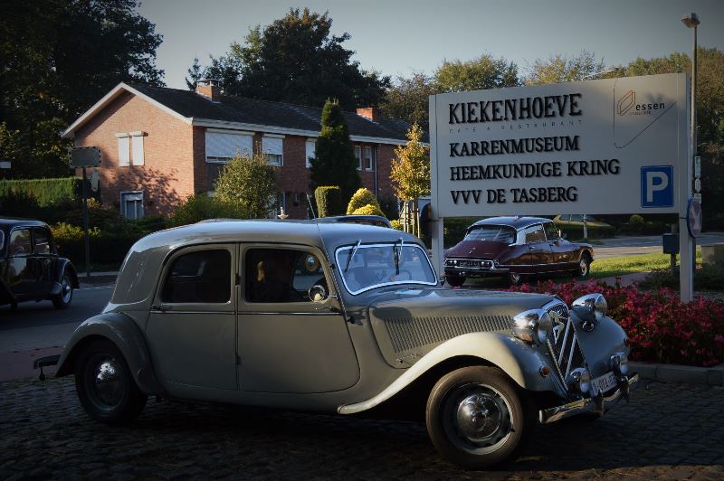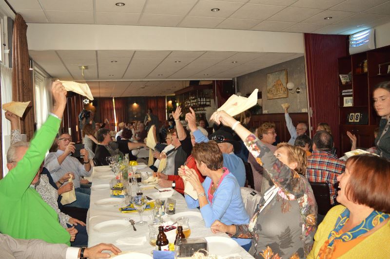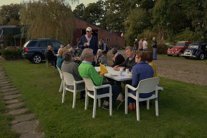 Na een goed ontbijt in de Kiekenhoeve (amai), reden we naar de koffie/vlaai bij een grappig scootermuseumpje in Klein Zundert. We bleven telkens de grens passeren via kleine weggetjes - en toen we bij de borrelstop aankwamen wisten we even niet meer in welk land we waren...oh ja dit lijkt me Nederland. Deze stop was een verrassende locatie - een scouting honk. De padvindersherinneringen en sterke verhalen werden opgehaald, terwijl Wilma Helbers met een spannende loterij onze aandacht wist te behouden. Er werd druk geteld hoevaak een Ollander prijs had, en hoe vaak een Vlaming. Ton Helbers was eerder op de dag al gesignaleerd, verkleed als bedelaar, en nu had hij met Leo alle auto's van een parkeerbon voorzien. En ja hoor, de schrik zat er even goed in. Bij het uitstekende diner op het eindpunt, werd vrolijk getoast met Lutgard en Jan de Bruyckere die de dag ervoor getrouwd waren. Alle deelnemers ontvingen een mooi Citroen miniatuur namens de BOCC alvorens huiswaarts te keren. Ton en Wilma en onze vrienden van de BOCC, bedankt voor deze mooie dag!