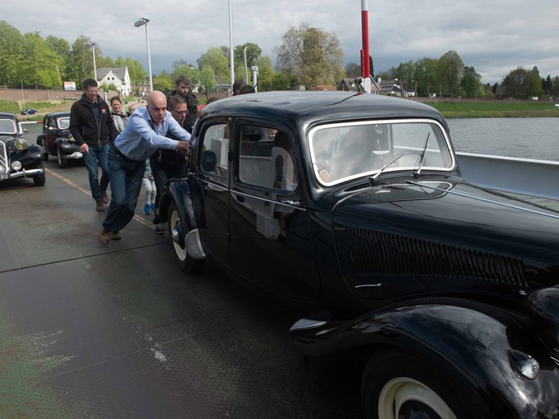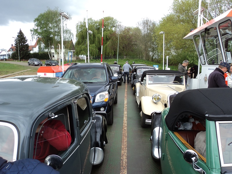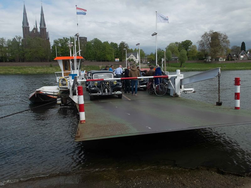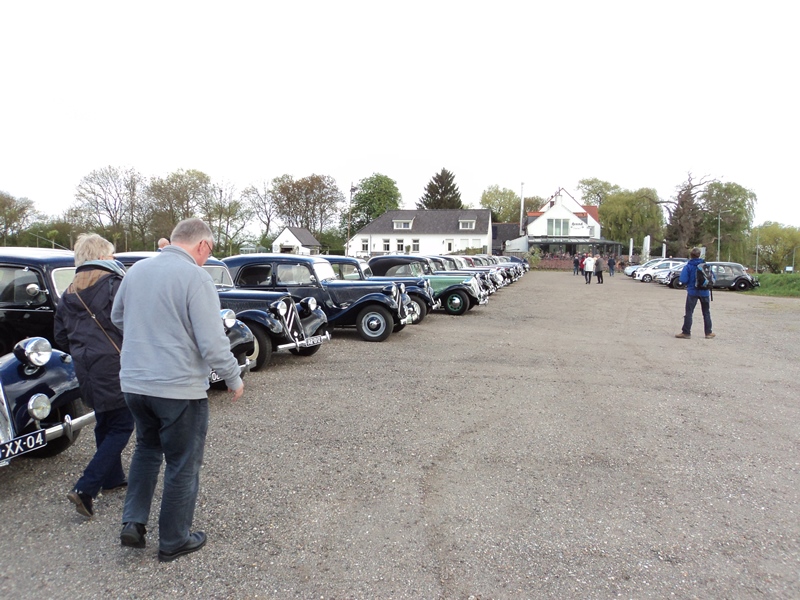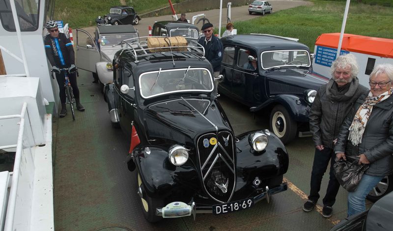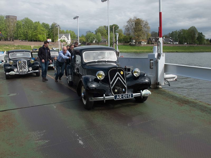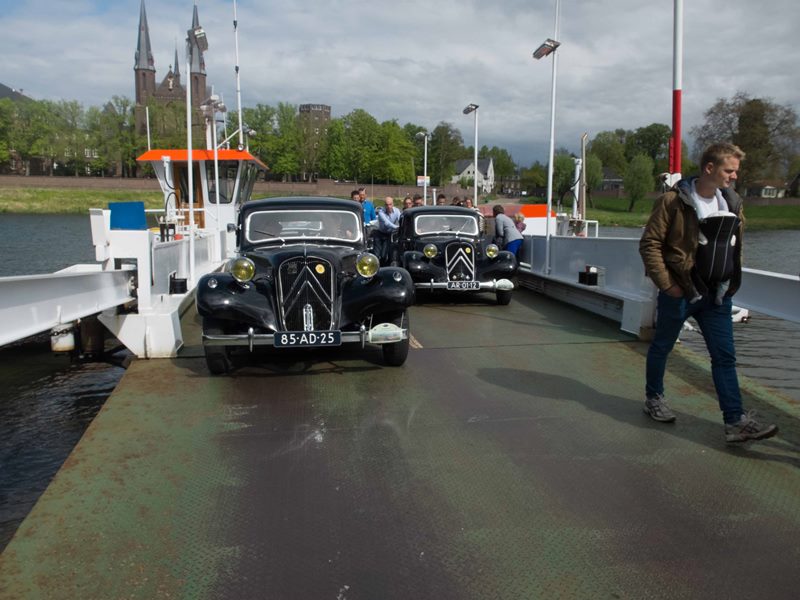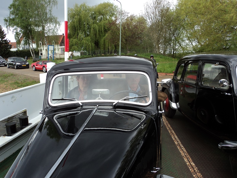 Hebben we deze keer dan geen enkele technische problemen? Jawel hoor, naast John Lambrechts heb ik ook een mankement. Maar is het nu “te weinig getankt” of achterstallig onderhoud? Feit is dat de dame 300 meter voor het einde van de rit, waarvan 100 met het pontje, niet meer wil starten. Gelukkig zijn er omstanders die meehelpen om haar veilig de helling op duwen en bij Maes neer te zetten. Op de parkeerplaats kijk ik samen met Ton onder de motorkap. Jan haalt zijn gereedschap. En Ton stelt de contactpuntjes opnieuw af. De Traction rijdt weer. En als we later naar huis rijden, rijdt Henk voor de zekerheid achter ons aan. Dit is TAN Zuid op zijn best, bedankt voor de hulp!