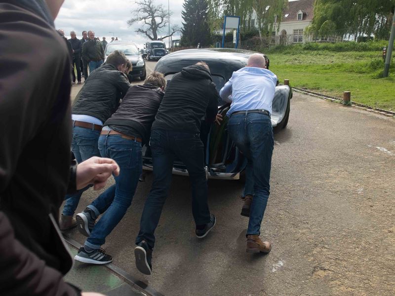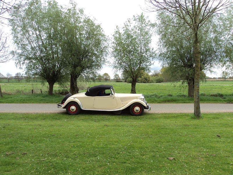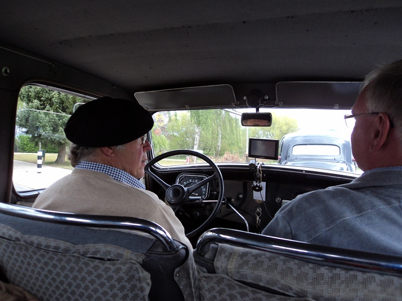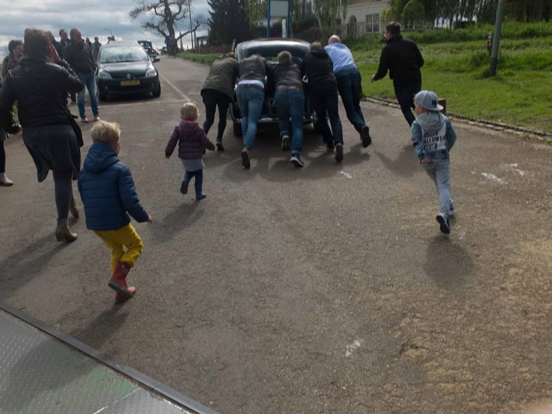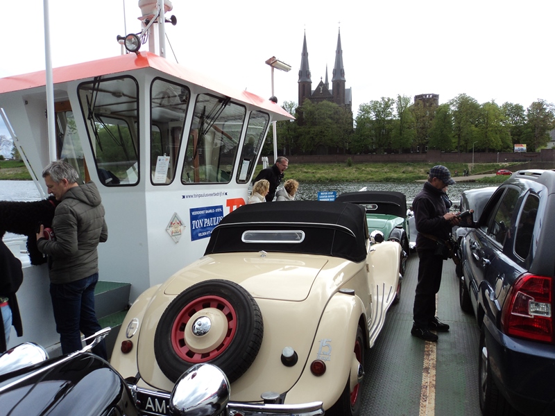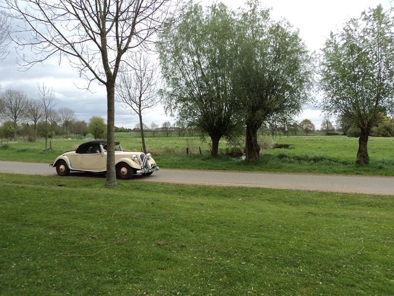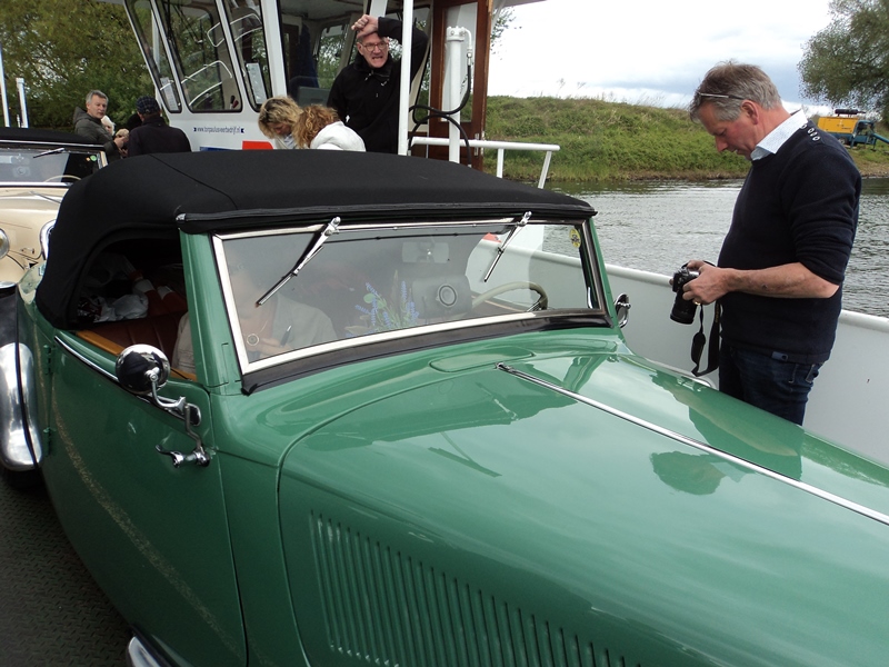 Hebben we deze keer dan geen enkele technische problemen? Jawel hoor, naast John Lambrechts heb ik ook een mankement. Maar is het nu “te weinig getankt” of achterstallig onderhoud? Feit is dat de dame 300 meter voor het einde van de rit, waarvan 100 met het pontje, niet meer wil starten. Gelukkig zijn er omstanders die meehelpen om haar veilig de helling op duwen en bij Maes neer te zetten. Op de parkeerplaats kijk ik samen met Ton onder de motorkap. Jan haalt zijn gereedschap. En Ton stelt de contactpuntjes opnieuw af. De Traction rijdt weer. En als we later naar huis rijden, rijdt Henk voor de zekerheid achter ons aan. Dit is TAN Zuid op zijn best, bedankt voor de hulp!