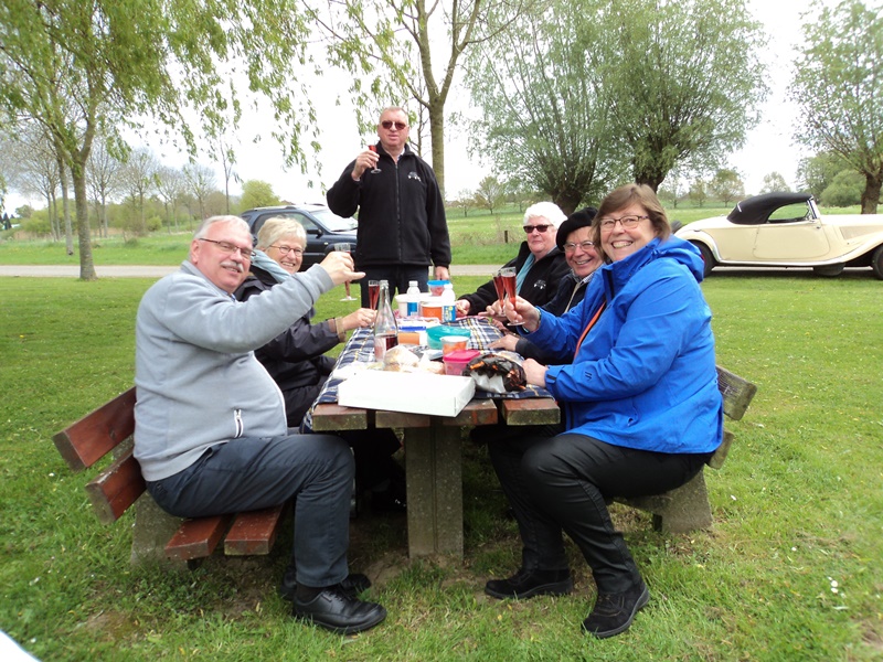 Na deze tussenstop rijden we verder en komen we weer terug bij Maes 21. Daar staat een drankje en een versnapering voor ons klaar. We kletsen bij. Daarna is het tijd om huiswaarts te keren. Het is een geslaagde dag, organisatie bedankt!