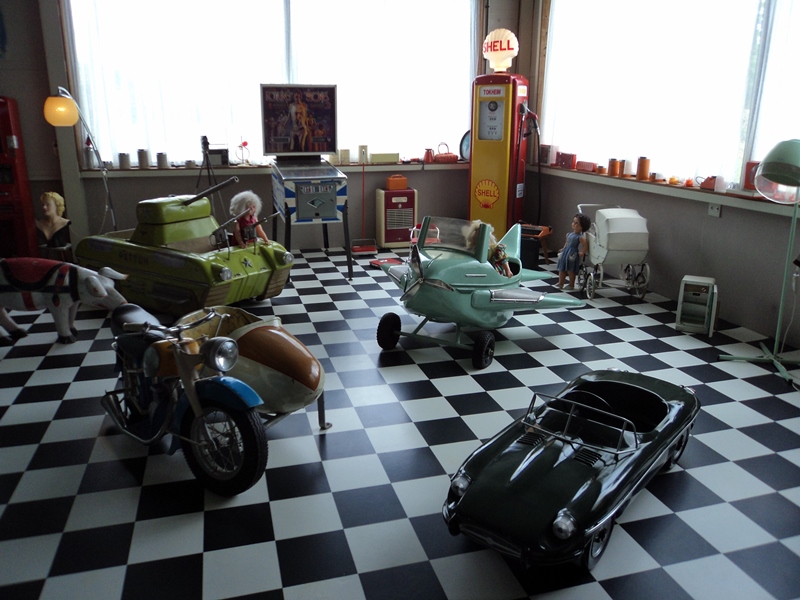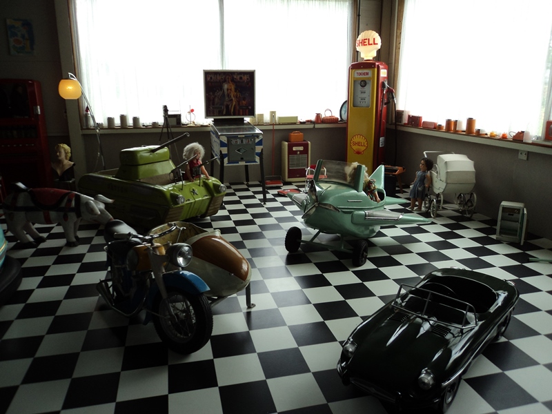 De gezamenlijke tussenstop is in Horn. Daar is een klein, maar boeiend museum ‘Terug in de Tijd’. Een museum over het alledaagse leven uit de jaren 50-60 met onder andere een grutterswinkel, bibliotheek, apotheek en bakkerswinkel. Verder waan je je op de eerste verdieping tussen de wandelwagens en tv-toestellen, echt even terug in de tijd. Op de beneden verdieping bewonderen we een hele collectie van bromfietsen en een aantal auto’s zoals een Rolls Royce, Traction en een Daf.