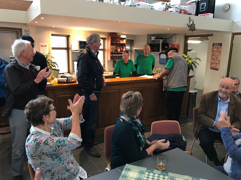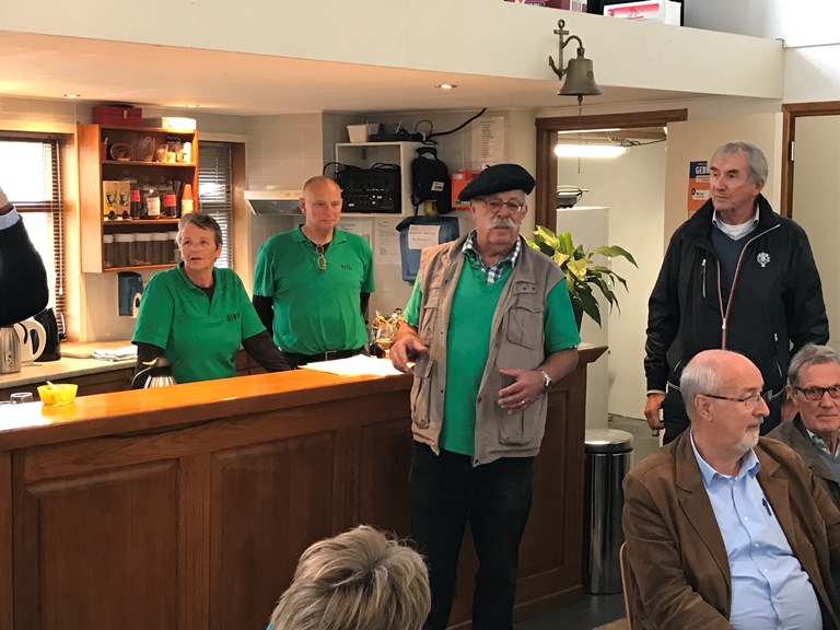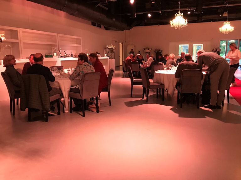 Tot slot werd er voor zo’n 30 belangstellenden een maaltijd geserveerd, die helaas kwalitatief geen recht deed aan het niveau van de dag. Het reeds aangekondigde voorgerecht werd uiteindelijk toch niet opgediend. Ook werd duidelijk dat de warmhoudapparatuur van zowel het eten als de borden in de keuken niet naar behoren functioneerde. Maar daar kon de organisatie net zoals op het weer verder geen invloed op uitoefenen.