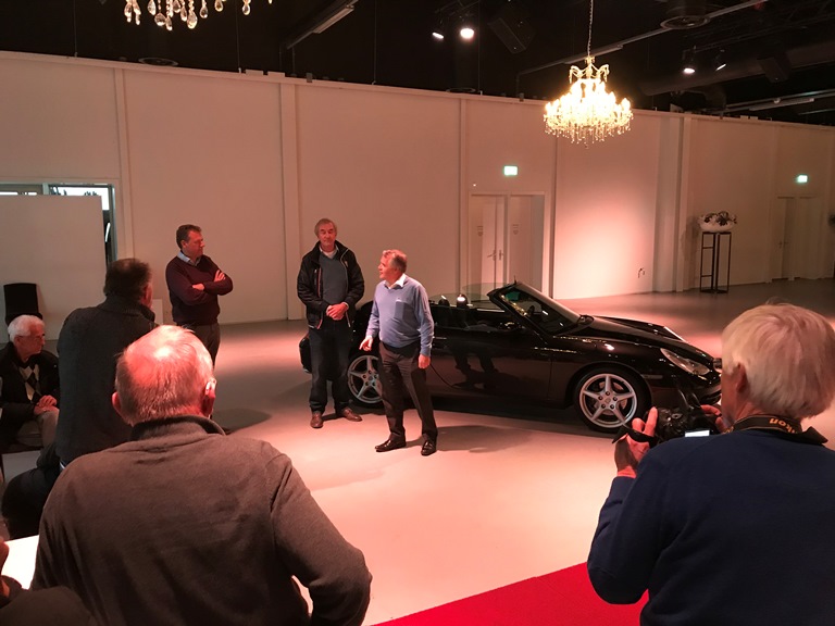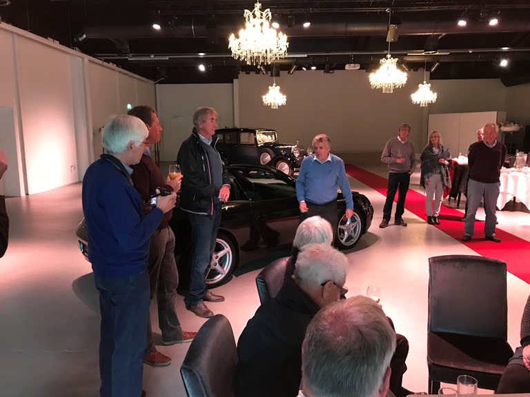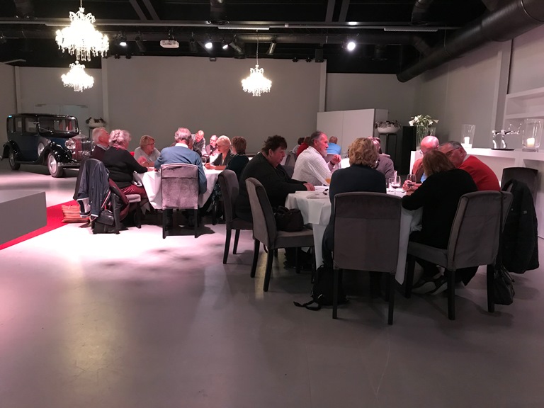 Daar wij ingecalculeerd hadden dat we zouden starten met een kopje koffie en/of thee, veronderstelden wij, ten onrechte bleek, dat de inloop een half uur voor het vermelde startmoment op de uitnodiging zou plaatsvinden. Wij mochten dan ook als een van de eersten de route, bonnetjes en het Schild voor op de Traction in ontvangst nemen. Daardoor waren we natuurlijk wel in de gelegenheid alle deelnemers, leden van de club ZUID, bij binnenkomst te monsteren. En wij konden constateren dat het wel goed zit met de onderlinge relaties binnen de club. Stoelen werden af en aan gesjouwd om gezellig bij elkaar bij te kletsen en ik hoorde, als volslagen leek, al snel allerlei termen uit het autovakjargon over en weer gaan.