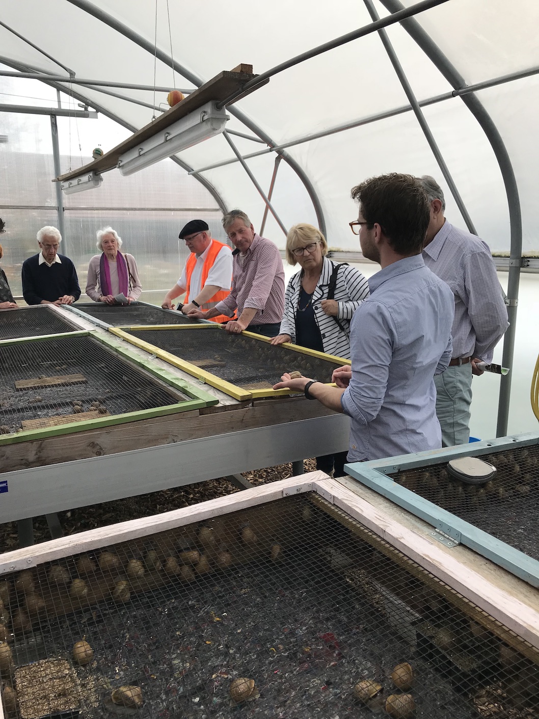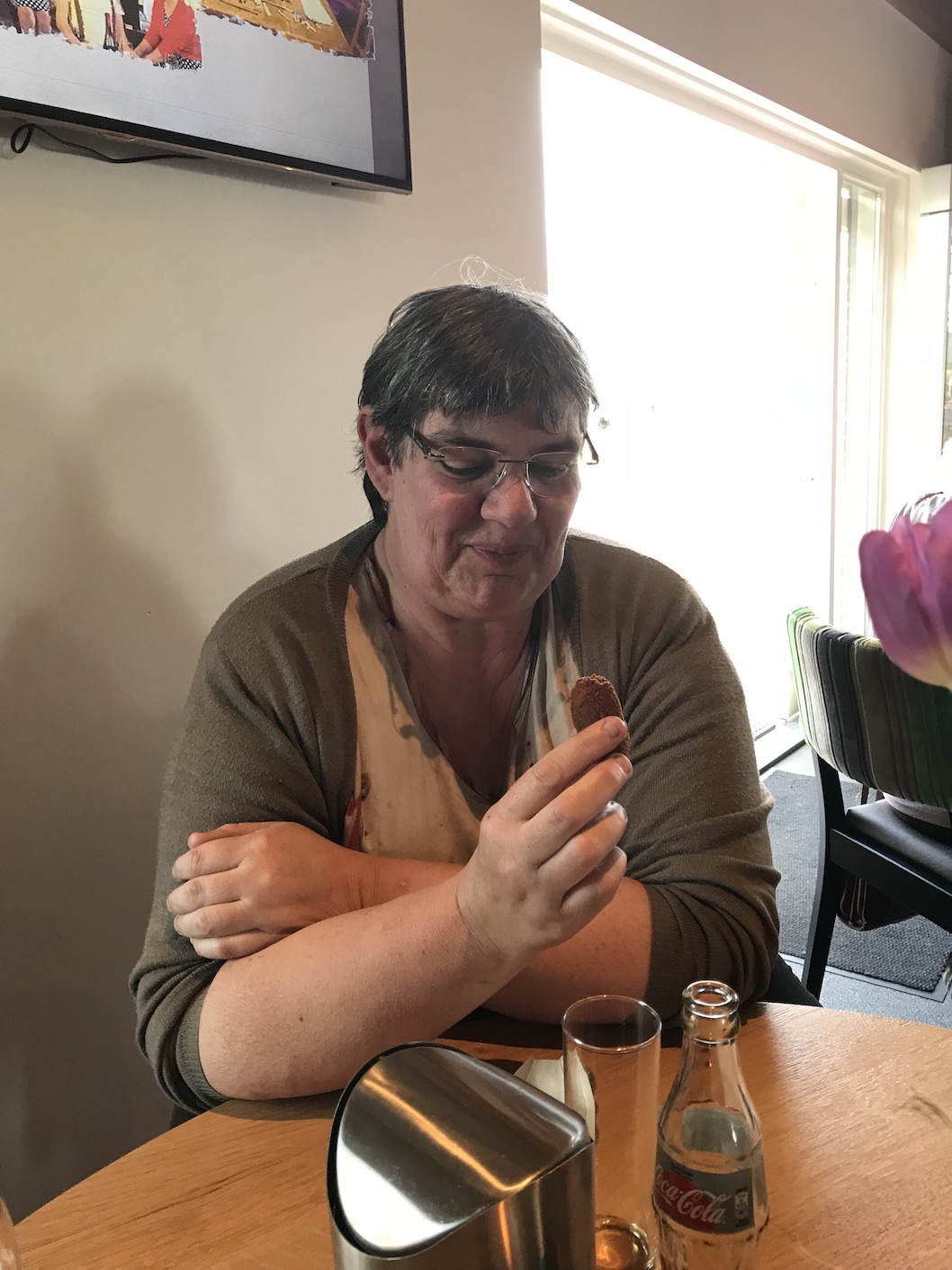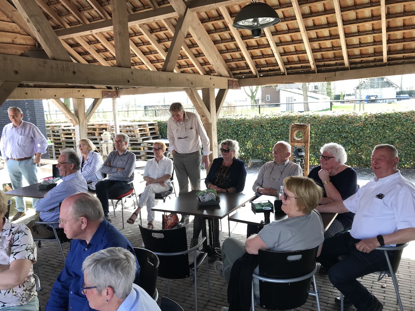 Al snel kwam de aap uit de mouw en de slak uit zijn huisje. Rolf van der Zande heette ons allen van harte welkom en kondigde vrolijk aan dat we een bezoek gingen brengen aan een slakkenkwekerij - inclusief jawel een proeverij..… De organisatoren hadden dat bewust geheim gehouden, om ons te verrassen. In ieder geval was de ontvangst met koffie prima. De heerlijke vlaai legde al een goede bodem voor de kruipertjes die we die middag naar binnen zouden laten glijden.