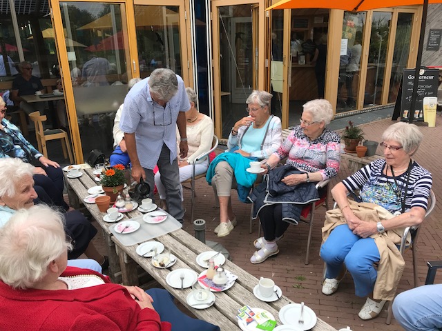 De tocht ging over smalle wegen en buurtschappen richting De Peel. Er was een stop gepland bij het Buitencentrum “De Pelen” te Ospel. Hier was er voor iedereen koffie of thee en Limburgse vlaai. Ook konden de mensen een drankje bestellen. Veel goede herinneringen over deze mooie streek werden opgehaald.