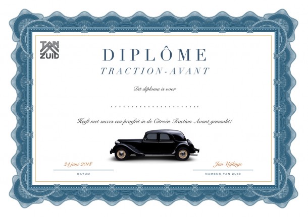 Het een en ander is mogelijk gemaakt door Traction Avant Nederland afdeling Zuid en de Vrienden Zorgcentrum Nicasius. Na afloop was er voor alle deelnemers een diploma voor hun geslaagde proefrit in de oldtimer. Het was een geslaagde middag.