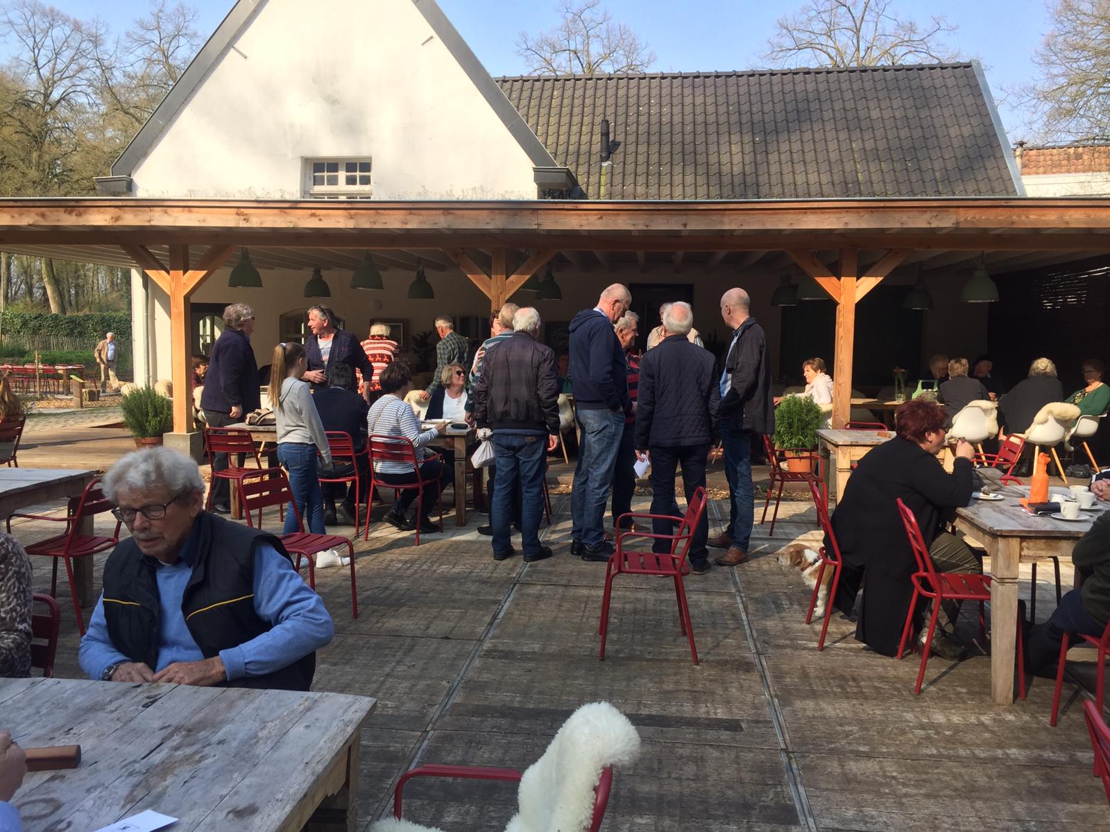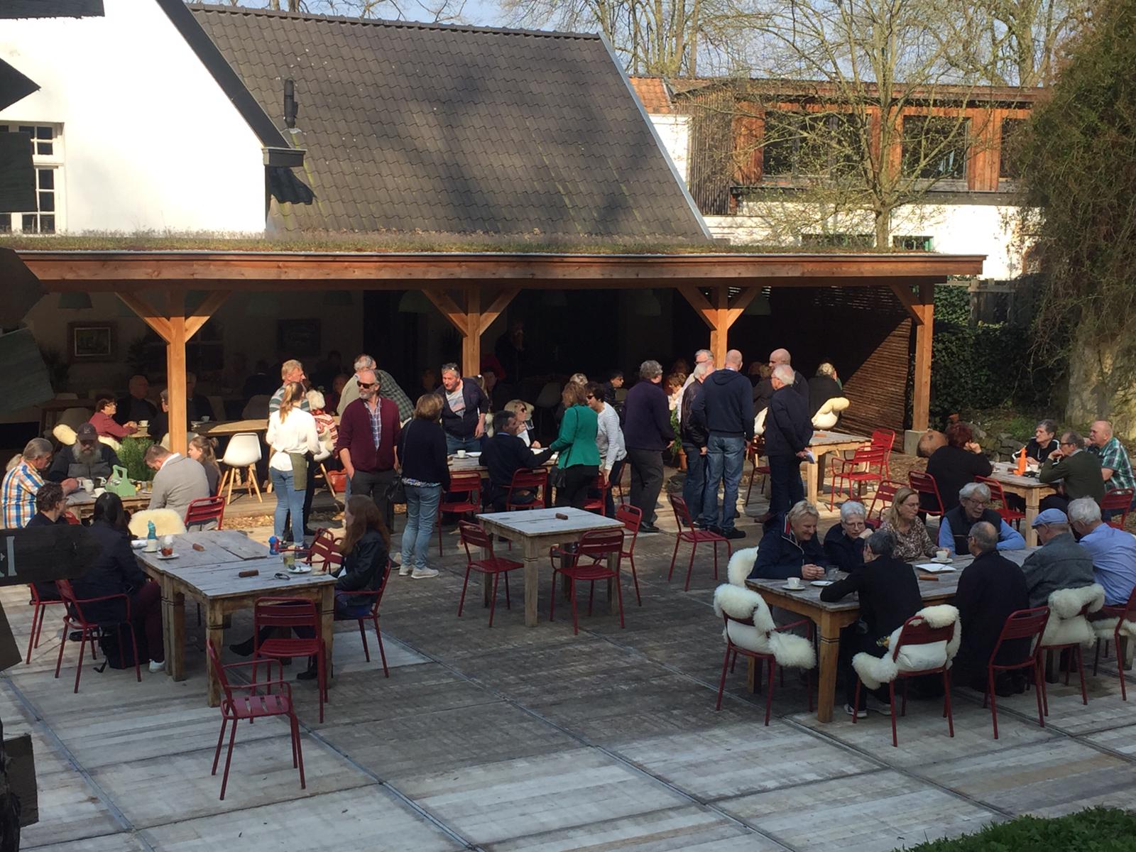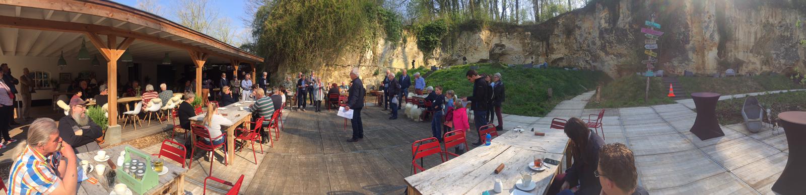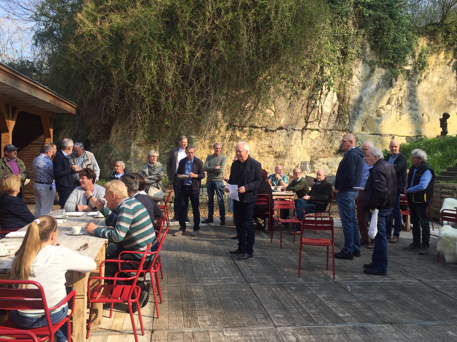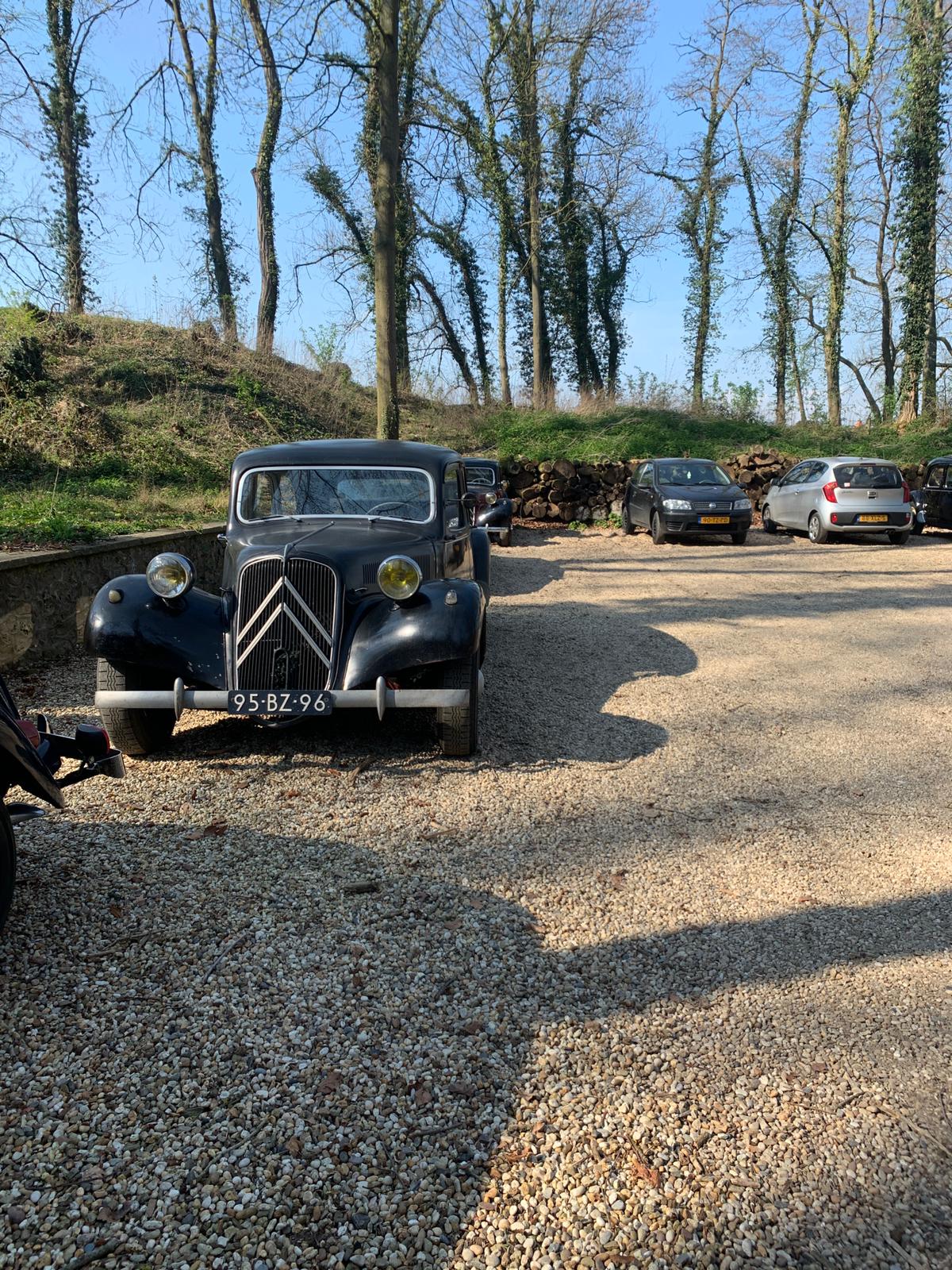 Wat zal de dag gaan brengen. De weersvooruitzichten voor deze dag waren al langer perfect. Dan wil je wel met de “oude dame” toch zeker op pad. Maar dit had niemand kunnen bedenken. Het voorjaar, zeg maar de volle zomer, begin april. We werden door Etienne Ubaghs ontvangen op Landgoed Heerdeberg in Cadier en Keer. Voorin een marktje met streekproducten en delicatessen. Tot oerbrood en schapenvachten toe. Een terras vol met tafels en banken, alles was buiten gedrapeerd. En natuurlijk meteen aan de koffie en Limburgse vlaai. Het woord vlaai al. Heerlijk !