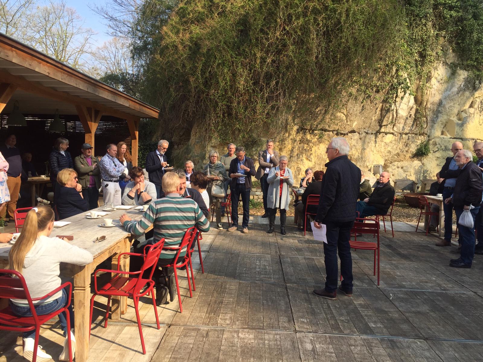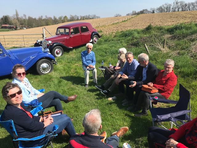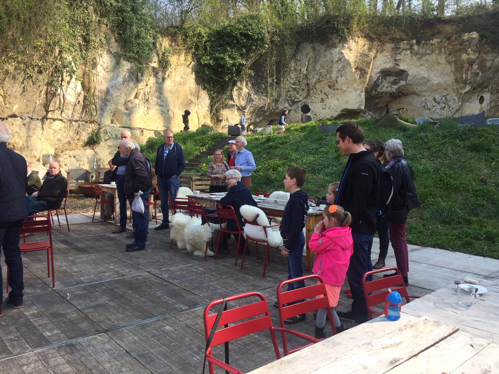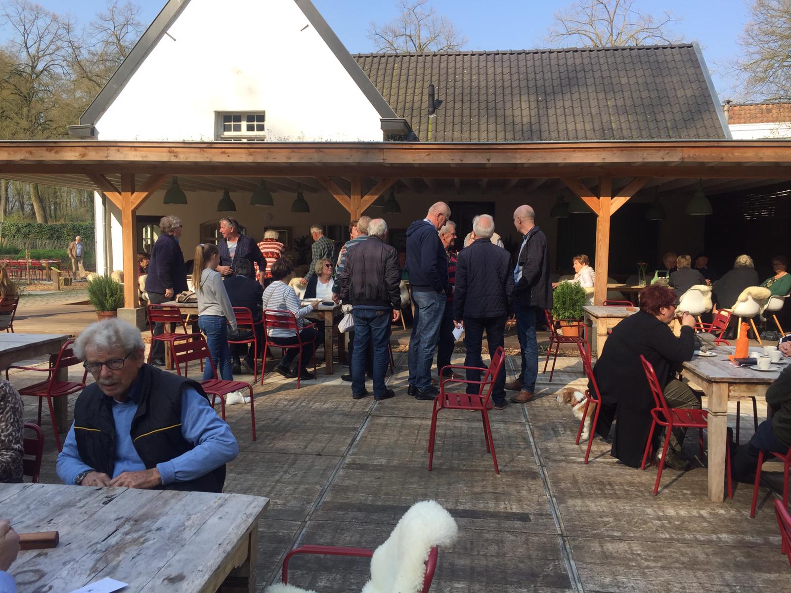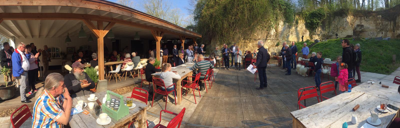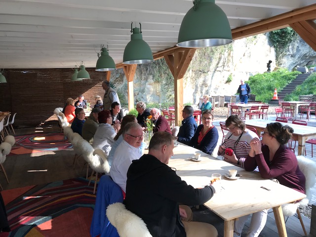 Wat zal de dag gaan brengen. De weersvooruitzichten voor deze dag waren al langer perfect. Dan wil je wel met de “oude dame” toch zeker op pad. Maar dit had niemand kunnen bedenken. Het voorjaar, zeg maar de volle zomer, begin april. We werden door Etienne Ubaghs ontvangen op Landgoed Heerdeberg in Cadier en Keer. Voorin een marktje met streekproducten en delicatessen. Tot oerbrood en schapenvachten toe. Een terras vol met tafels en banken, alles was buiten gedrapeerd. En natuurlijk meteen aan de koffie en Limburgse vlaai. Het woord vlaai al. Heerlijk !
