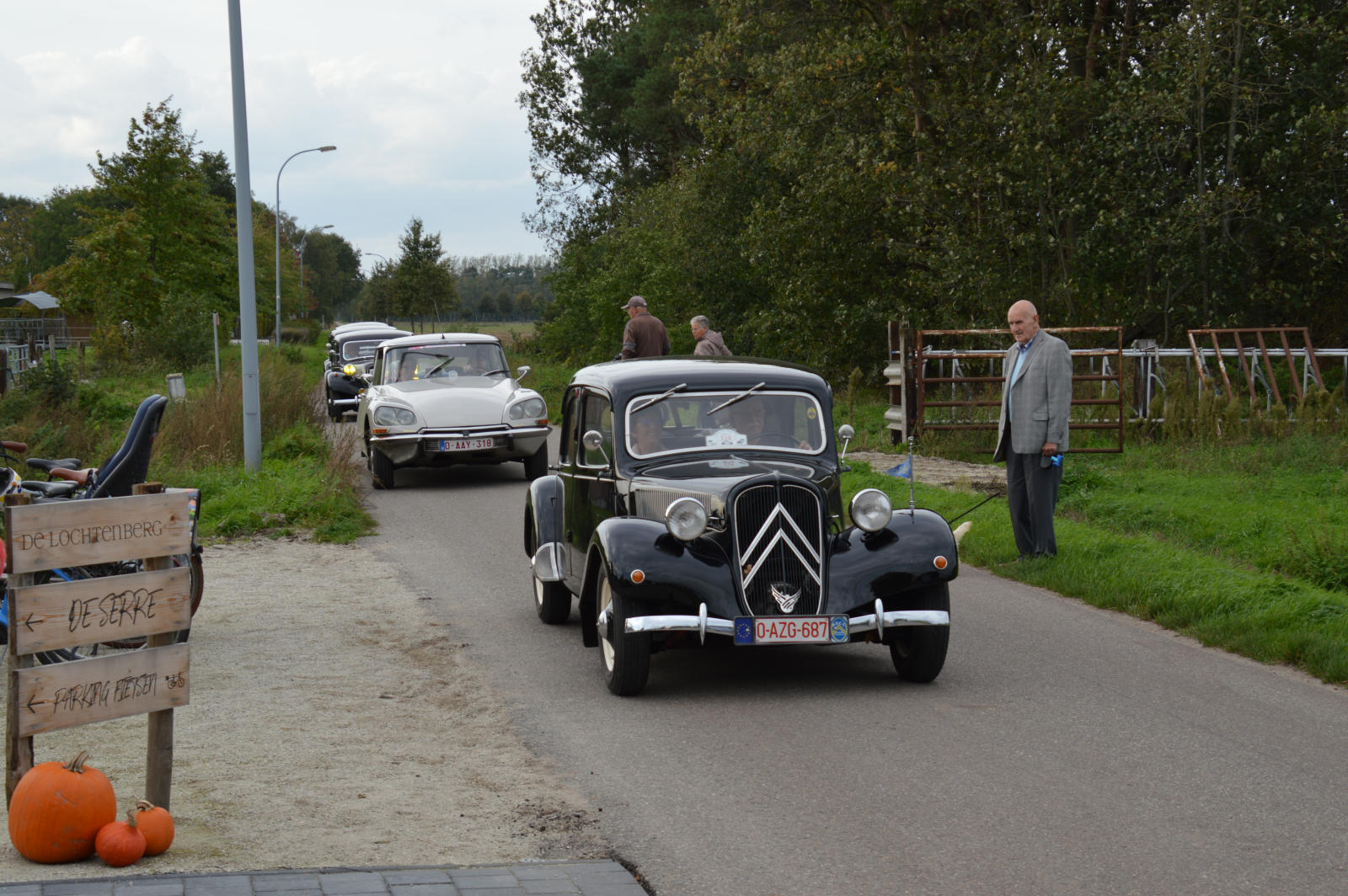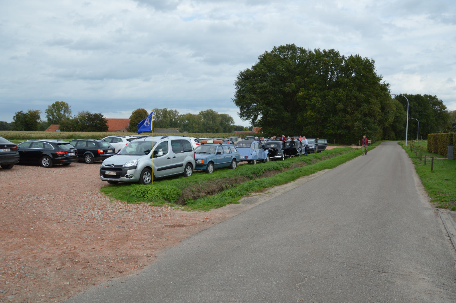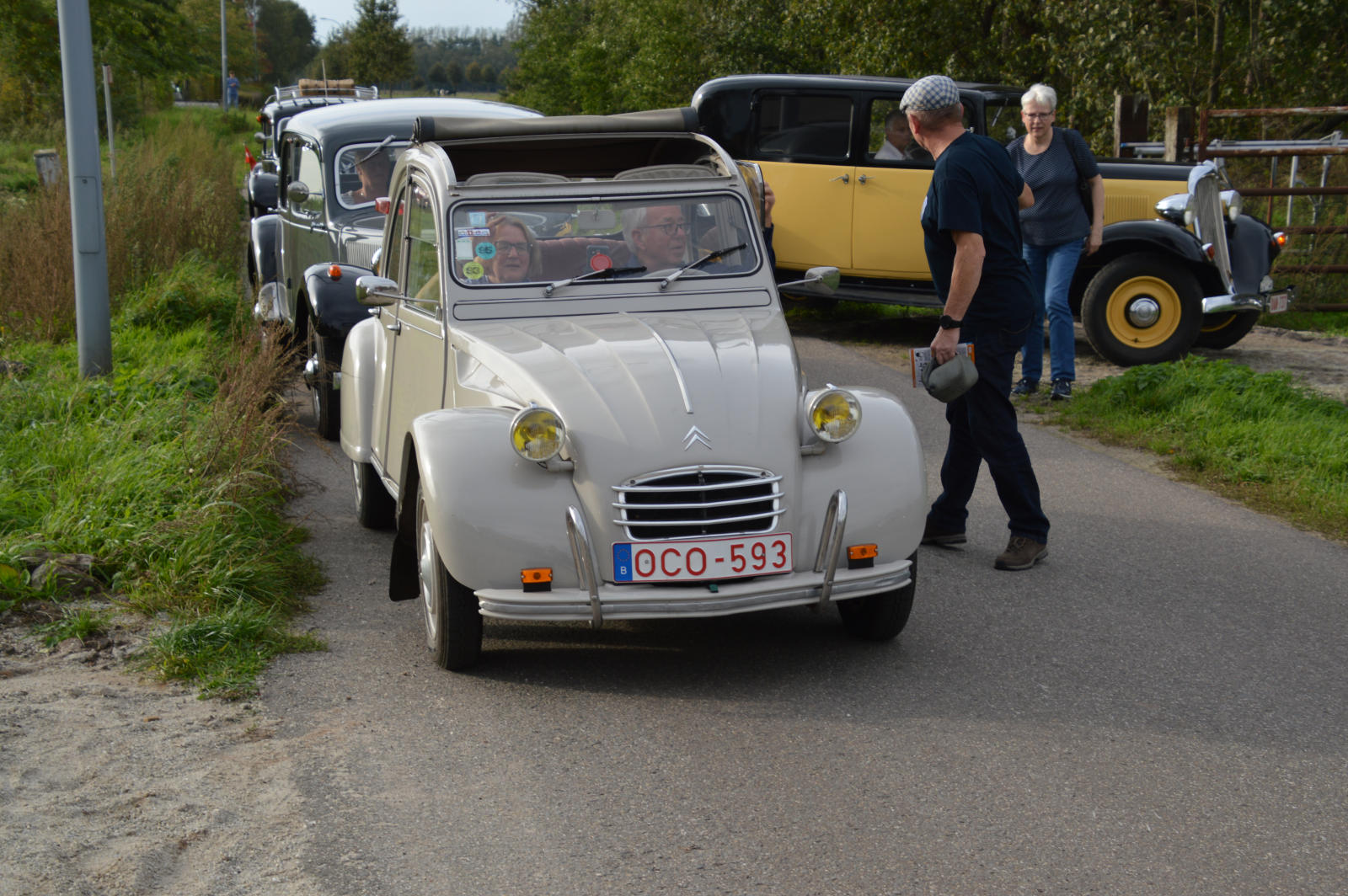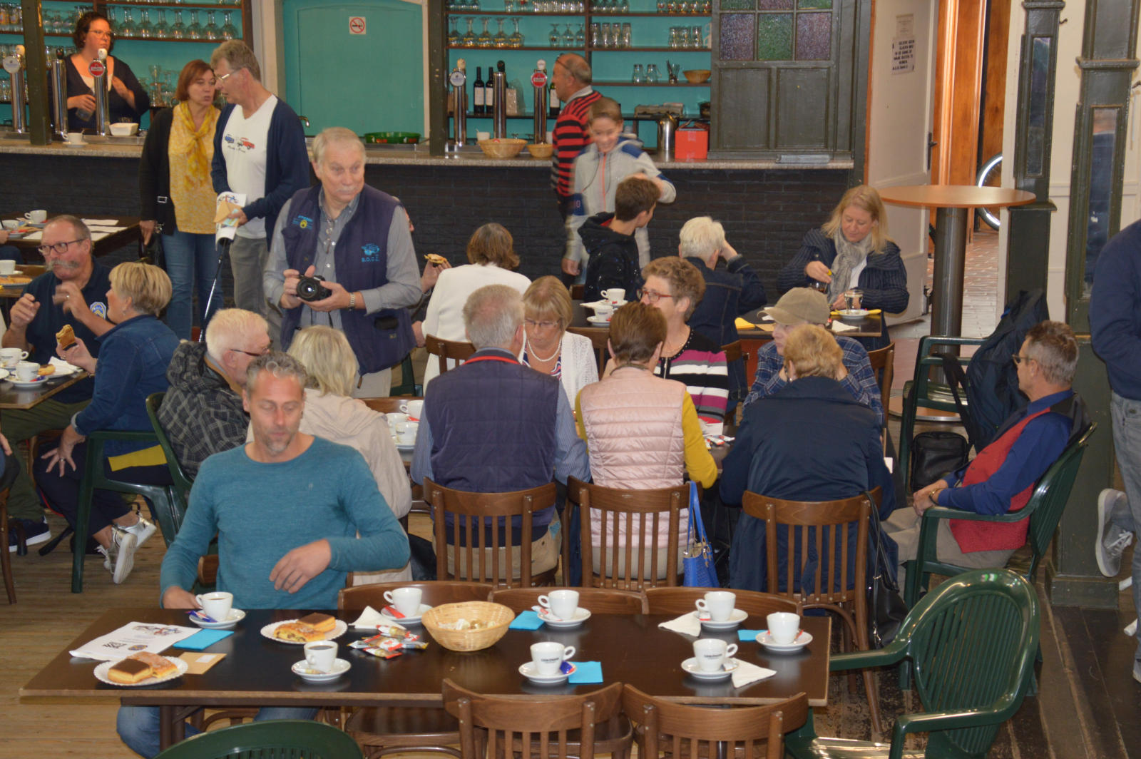 Ruim 30 auto’s en 70 deelnemers verzamelde zich in een Belgisch staminee in Essen, waar we getrakteerd werden op koffie/thee en twee enorme lekkernijen. Dat ging erin als koek!