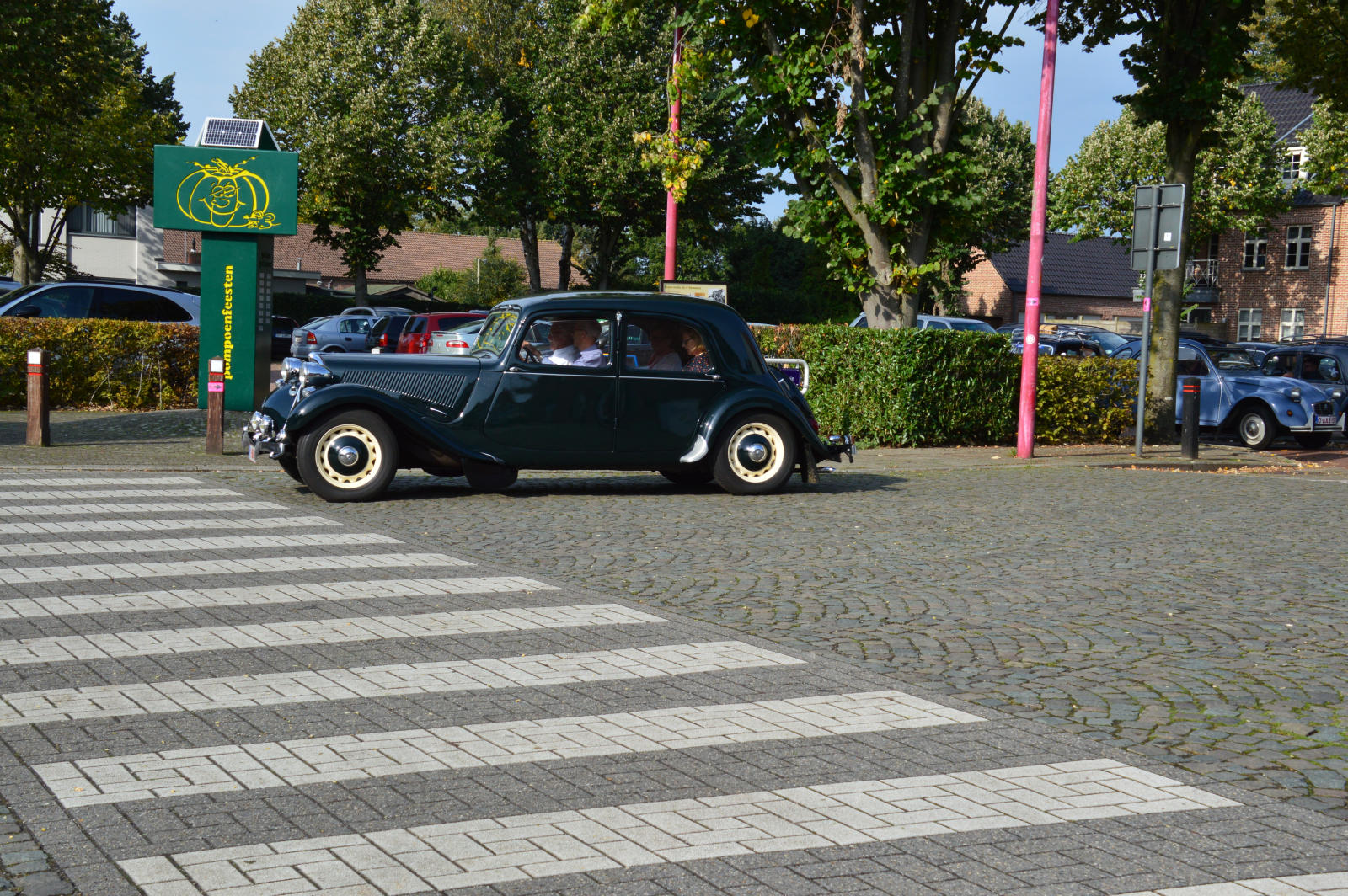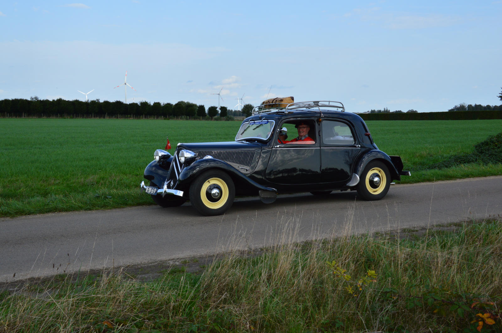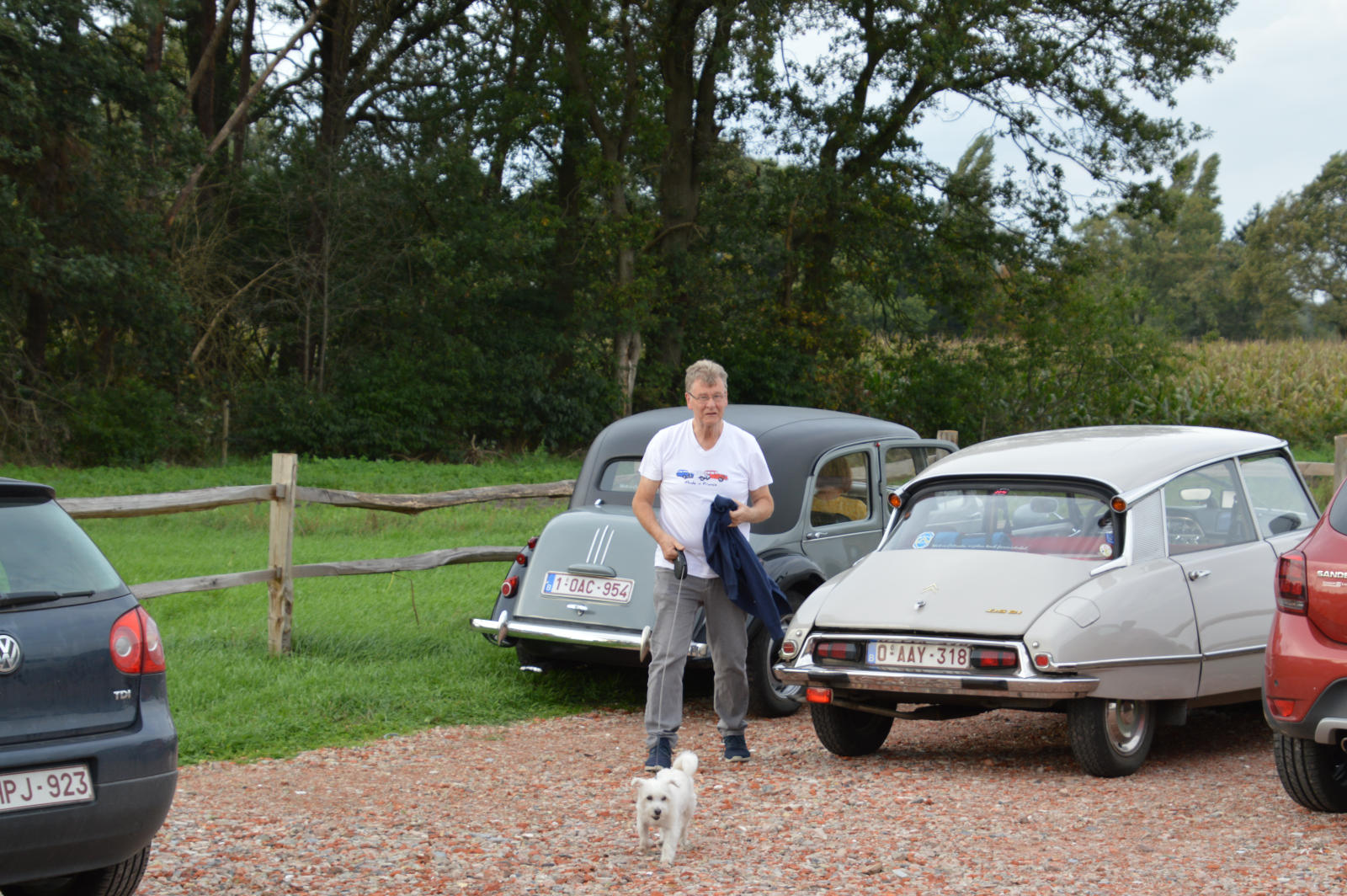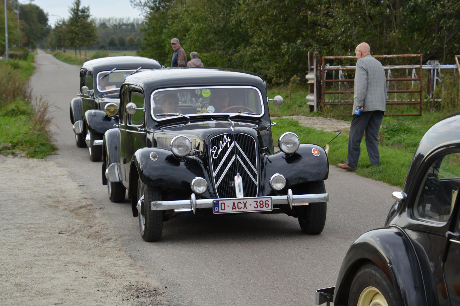 Ruim 30 auto’s en 70 deelnemers verzamelde zich in een Belgisch staminee in Essen, waar we getrakteerd werden op koffie/thee en twee enorme lekkernijen. Dat ging erin als koek!