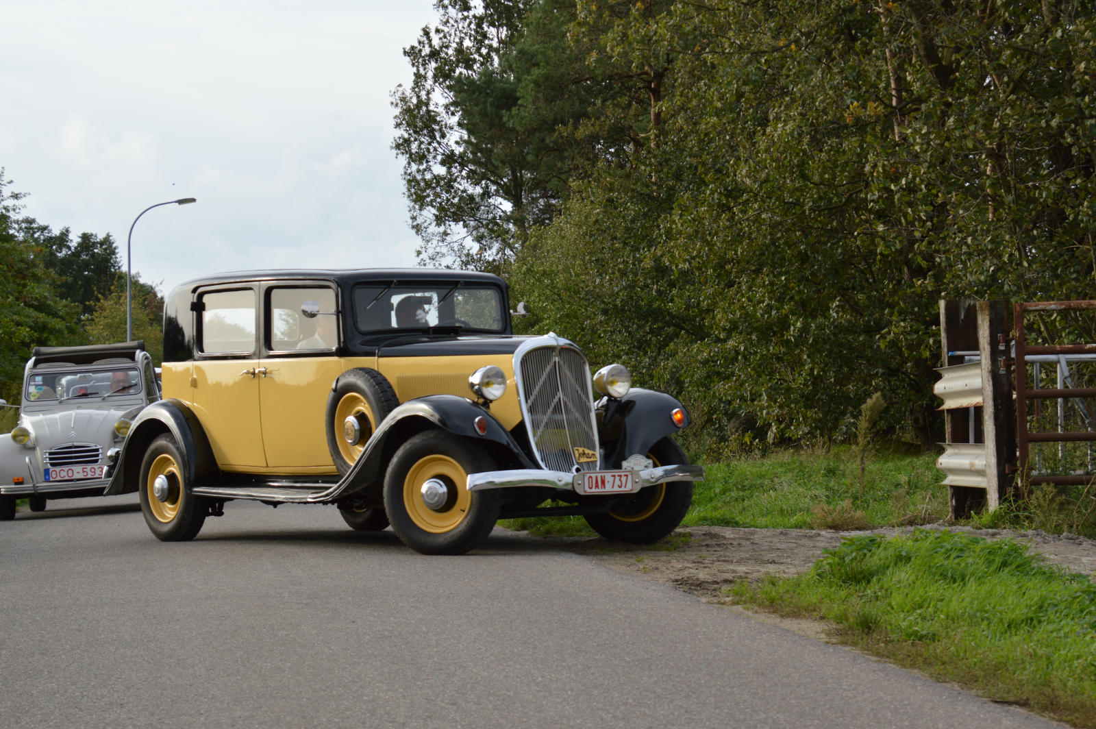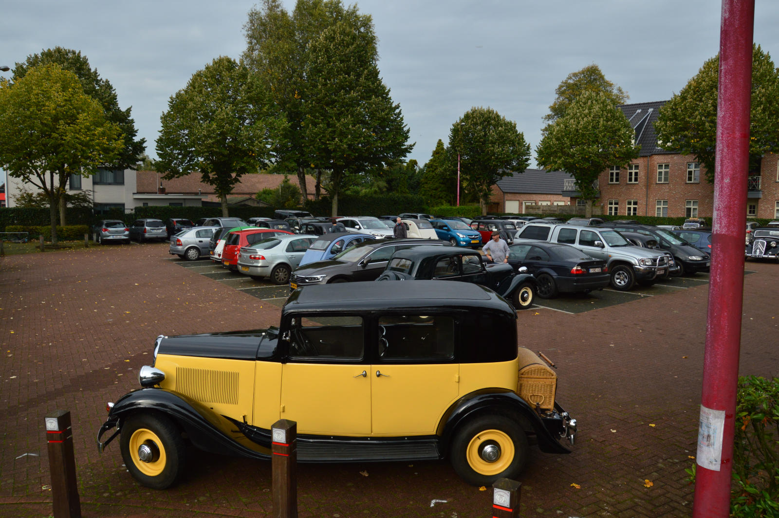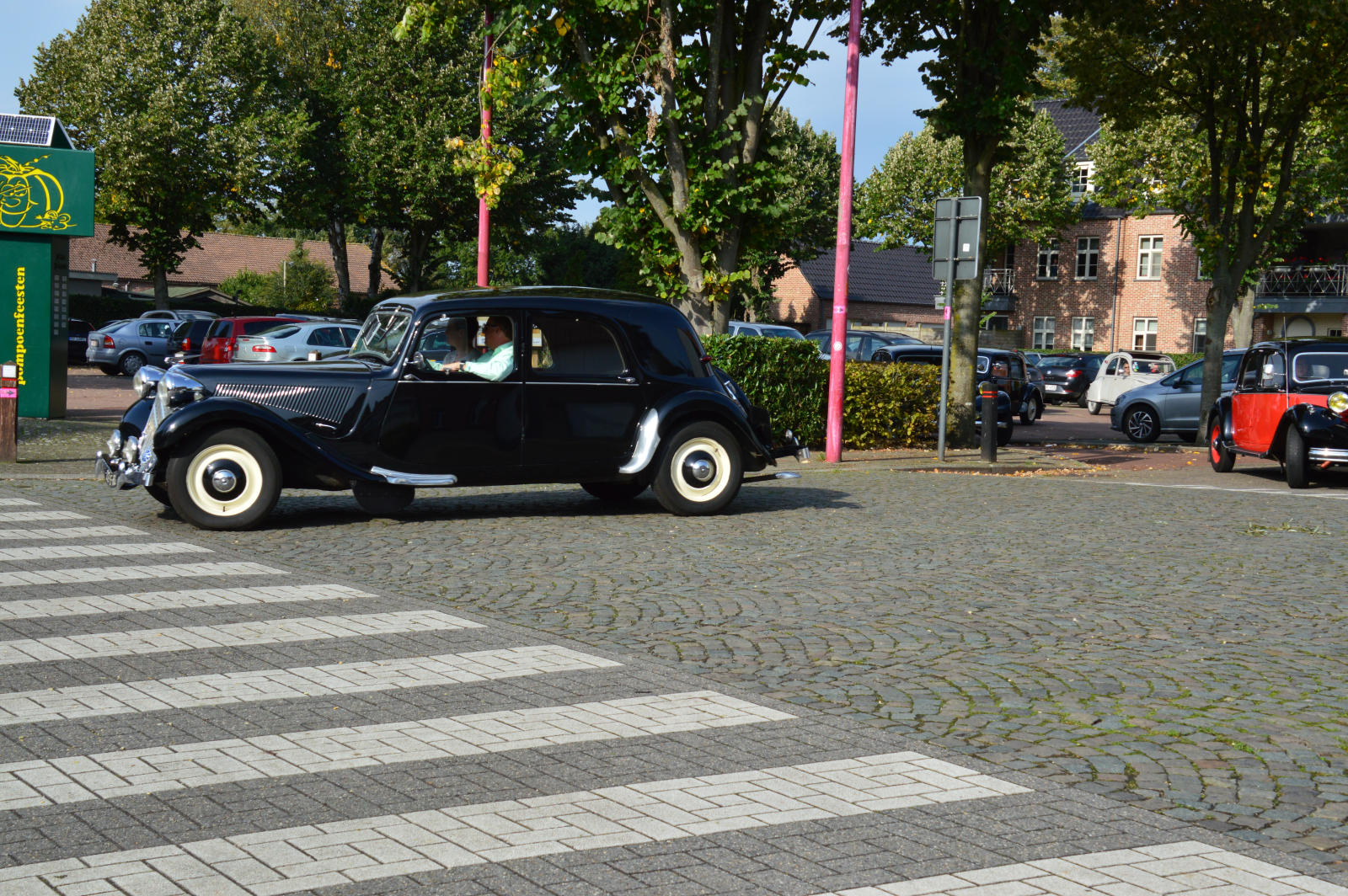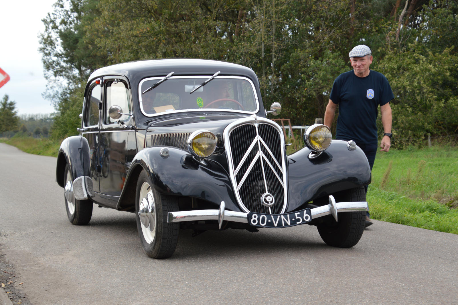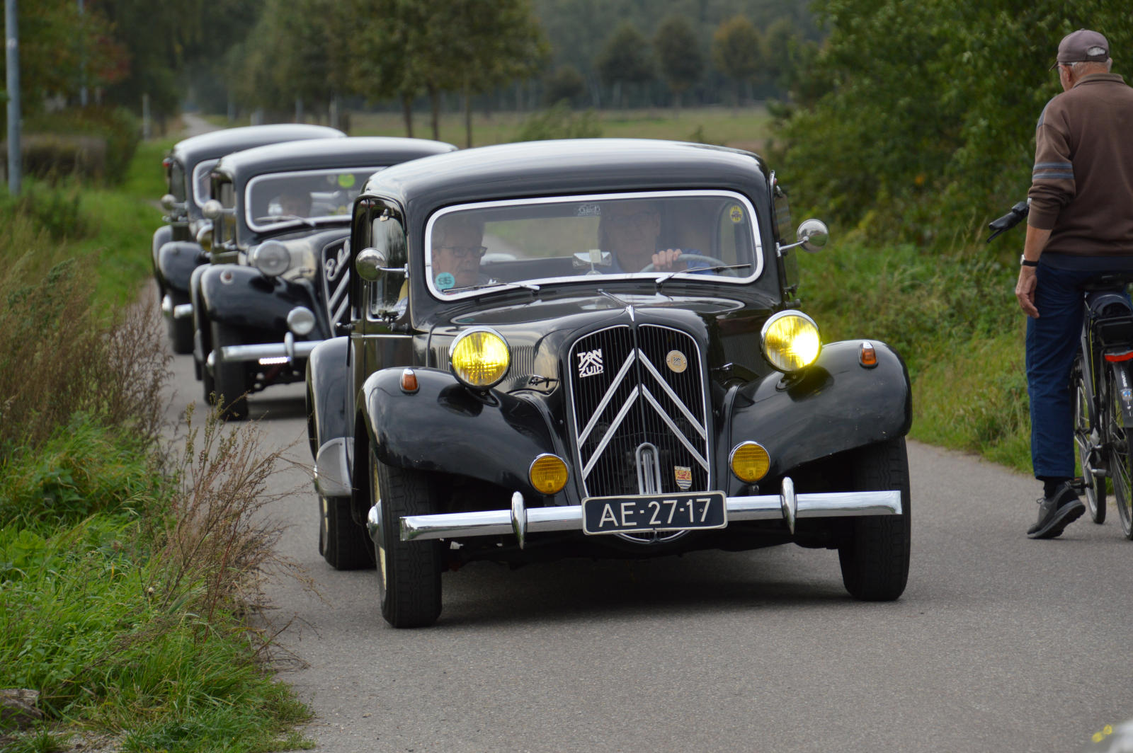 Ruim 30 auto’s en 70 deelnemers verzamelde zich in een Belgisch staminee in Essen, waar we getrakteerd werden op koffie/thee en twee enorme lekkernijen. Dat ging erin als koek!