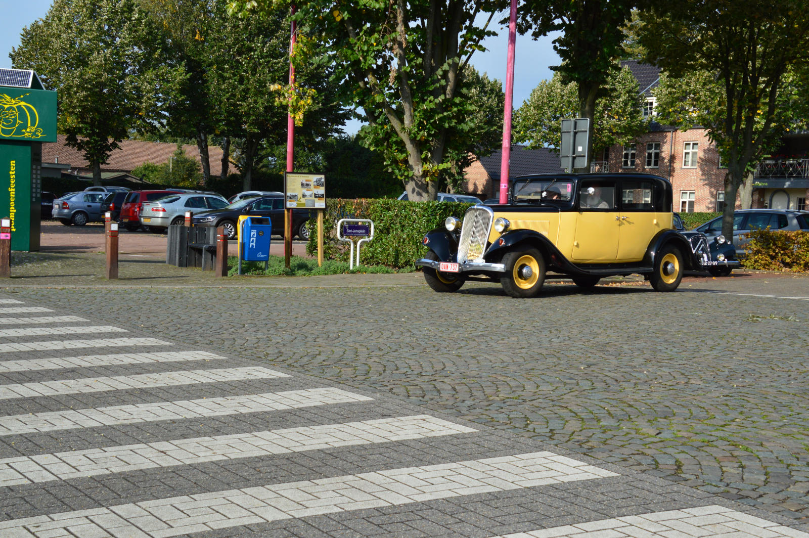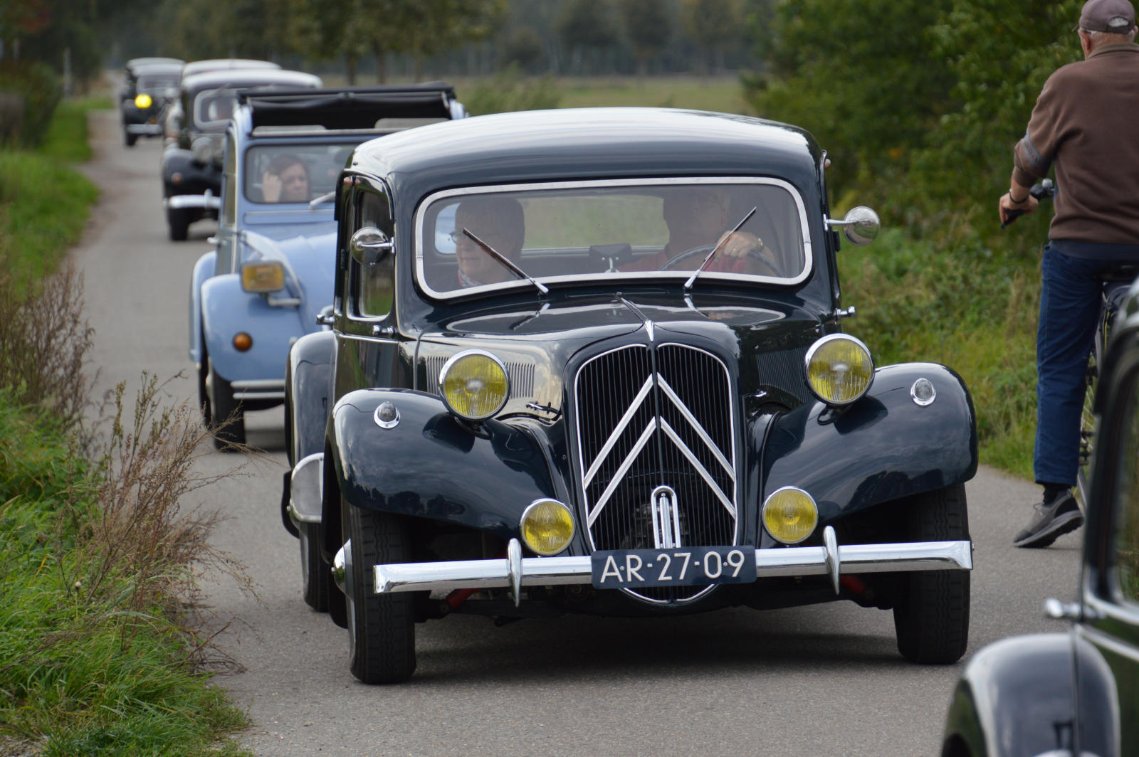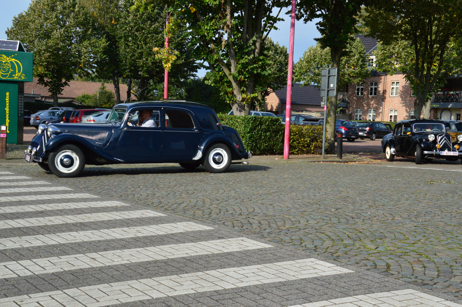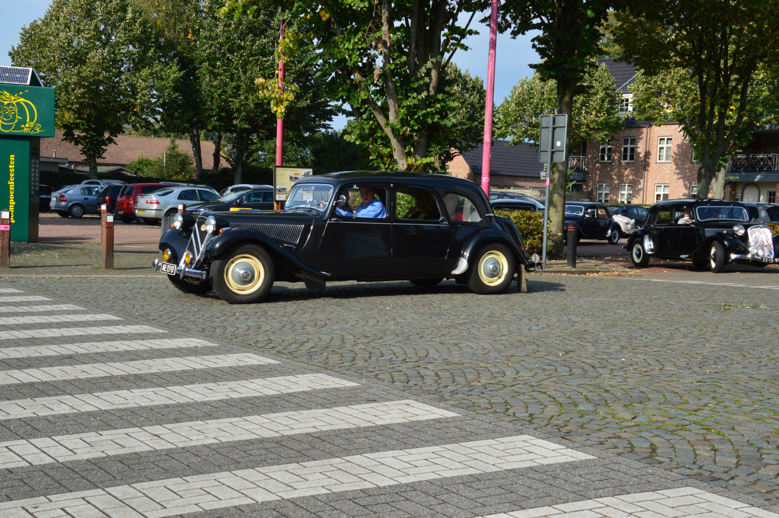 Ruim 30 auto’s en 70 deelnemers verzamelde zich in een Belgisch staminee in Essen, waar we getrakteerd werden op koffie/thee en twee enorme lekkernijen. Dat ging erin als koek!