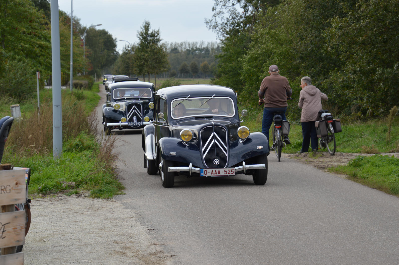 De ritmeester heeft zich danig van zijn taak gekweten, want we zijn GEEN stoplichten en GEEN grote wegen tegen gekomen. Wel veel kasseiden en natuur. Prachtig, nog in volle kleuren van het najaar.