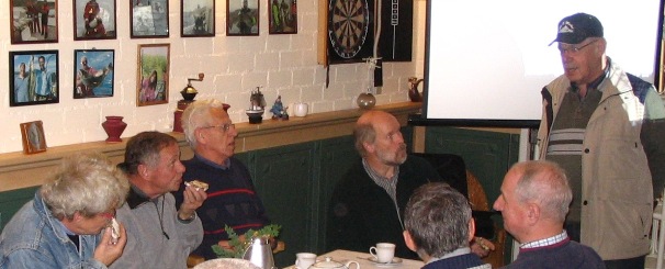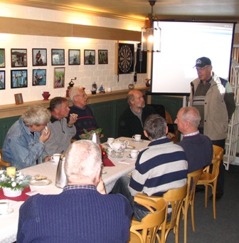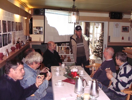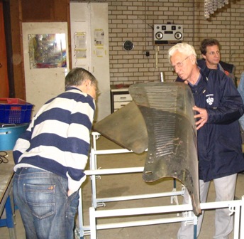 We begonnen met een heerlijke kop koffie en stuk kerststol aan de stamtafel bij Frans Gommans in Lottum. De projector stond al klaar en Wim vertelde ons stap voor stap hoe hij de processen uitvoert. Piet van Vonderen had enige tijd ervoor al wat motorkappen en deuren bij Frans en Wim aangeleverd. Zodoende konden we eerst op beeld en daarna in het echt zien wat het resultaat van elk proces was.
