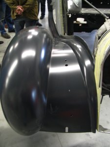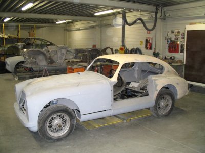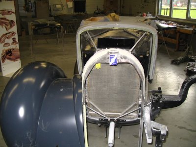 's Middags gingen we naar Grubbenvorst, om daar bij de gebroeders Niessen te kijken naar al het moois dat zij restaureren. We werden hartelijk ontvangen en kregen een rondleiding door het hele bedrijf. Hier worden nog op ambachtelijke wijze oldtimers gerestaureerd. Spatborden van een Aston Martin bijvoorbeeld die worden geklopt uit aluminium met houten hamer op een zandzak. Topstuk dat we konden bezichtigen was een Talbot-Lago T120 uit 1939. Een auto waar maar enkele exemplaren van zijn gemaakt en die helemaal is gestript en weer opgebouwd wordt. Een waar kunstwerkje, waarbij het houtwerk van het frame van de carrosserie nog de meeste hoofdbrekens kostte. Als het meezit gaat deze auto in de zomer van 2008 een mooie prijs winnen op het concours van Pebble Beach in de Verenigde Staten. Aardig detail was ook de versnellingsbak die met pre-select werkt. Je schakelt vast naar de volgende versnelling en via het bedienen de koppeling schakelt de auto pas op of terug.
