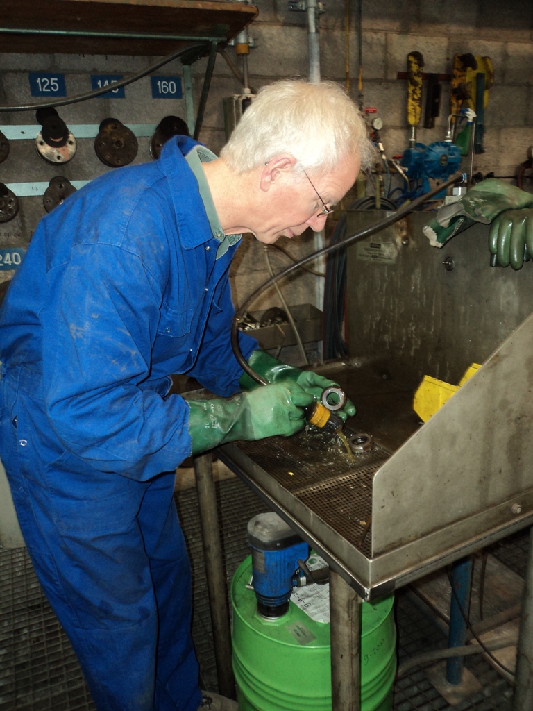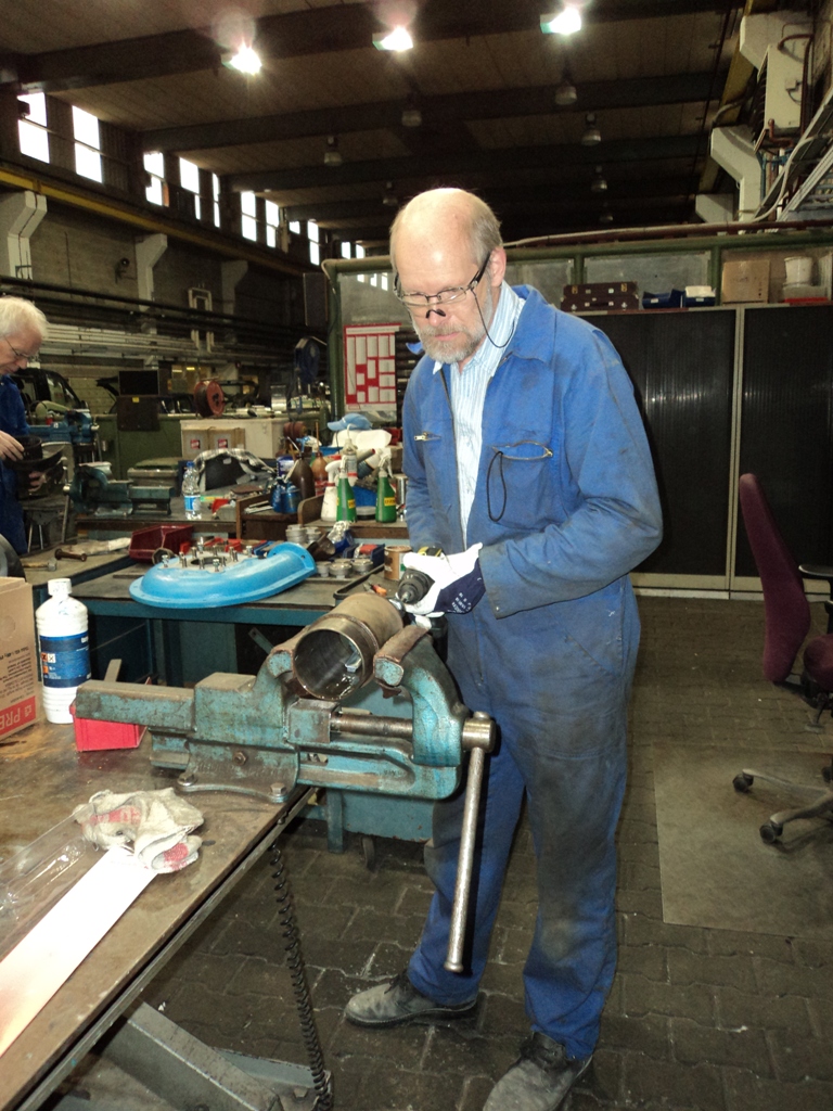 De indrukwekkende werkplaats van ThermPhos in Vlissingen beschikt over de meest moderne was- spoel- en straal machines. Een waar eldorado voor de wat aangetaste onderdelen van onze op leeftijd zijnde dames.
